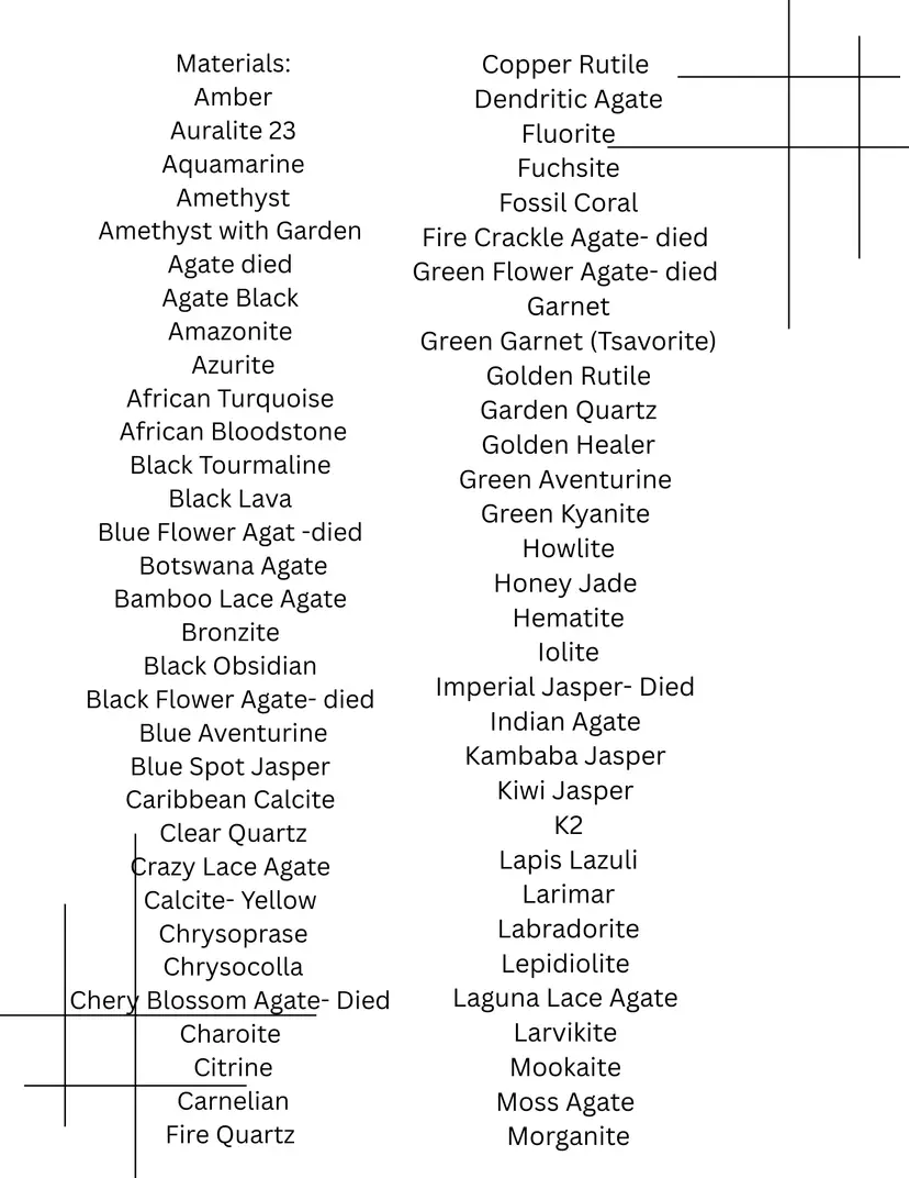 List of some of the available beads for bracelets. Have a request let me know and I will do my best to source it!