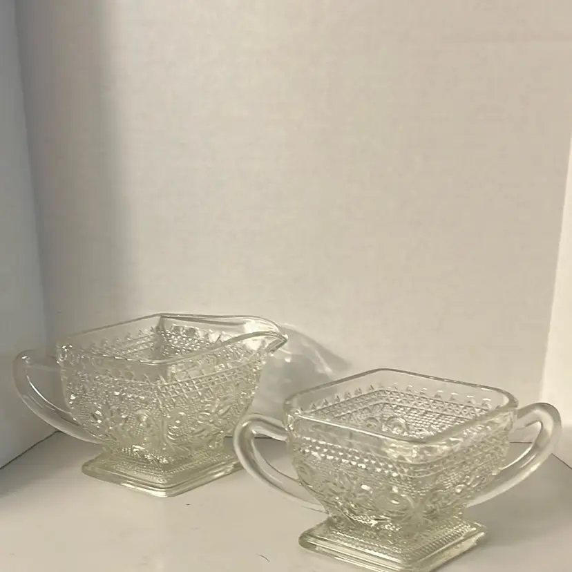 019 Sugar Vintage Tiara Indiana Glass Sandwich Creamer And Sugar