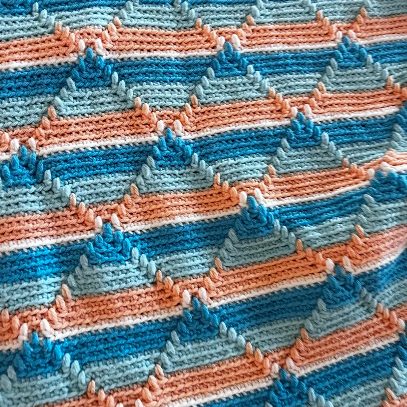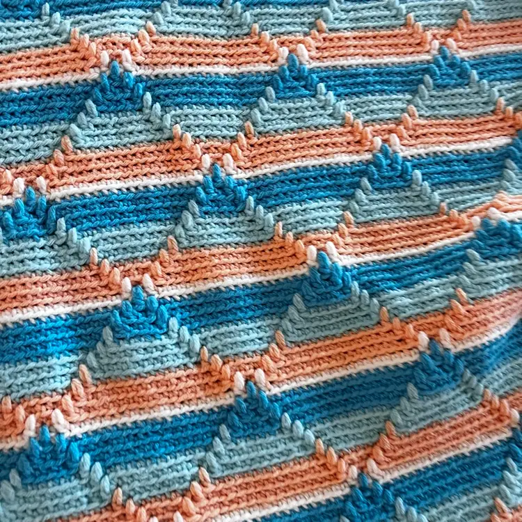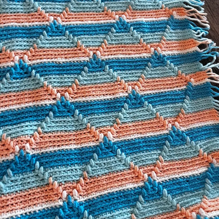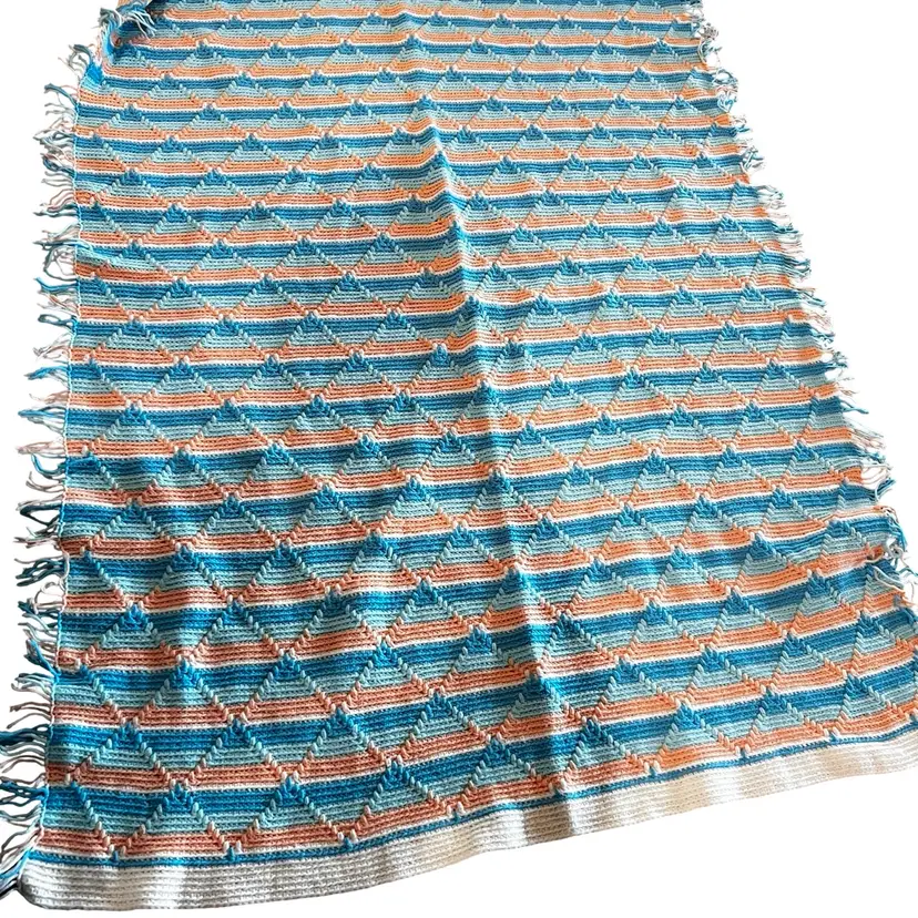 007 Vintage Handmade Southwest Peach Blue And White Fringe Afghan