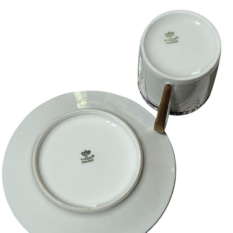 #01 032 Limoge, France, 2" X 3" Cobalt, Blue And Gold Demitasse, Cup And Saucer