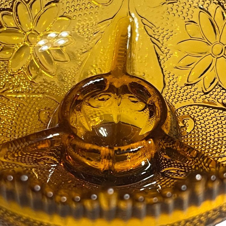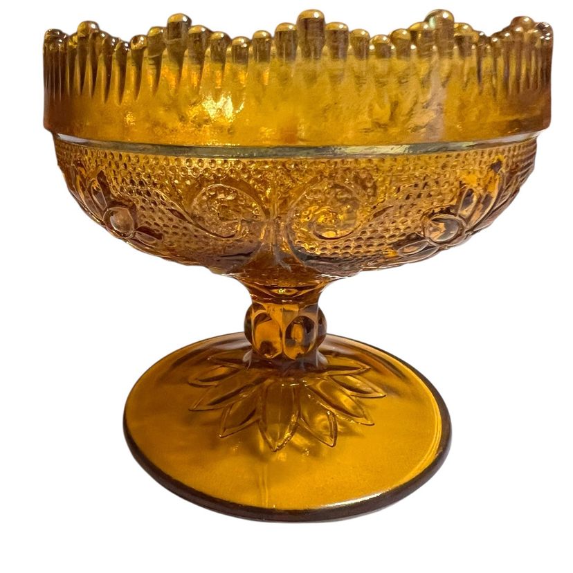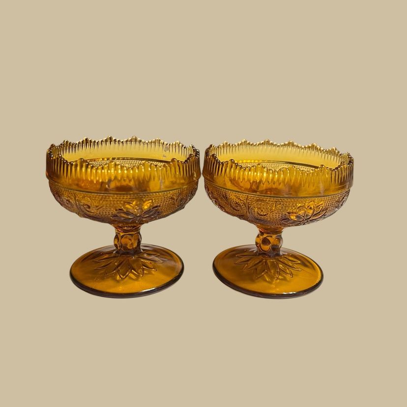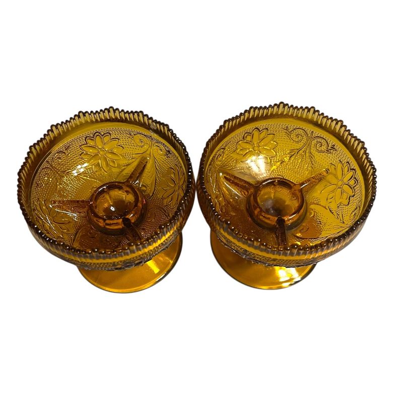 Footed Indiana Glass Amber Tiara Sandwich Pair Of Candlestick Holders 3.5" X 3.5"
