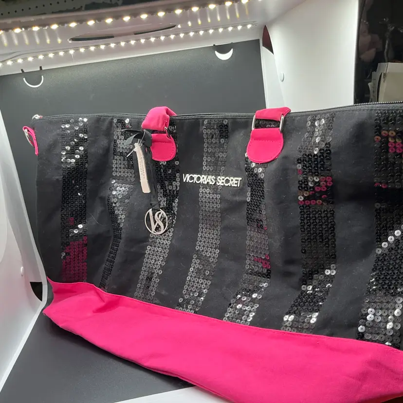 #01 11 - VS Black Sequin And Hot Pink Canvas Gym Tote