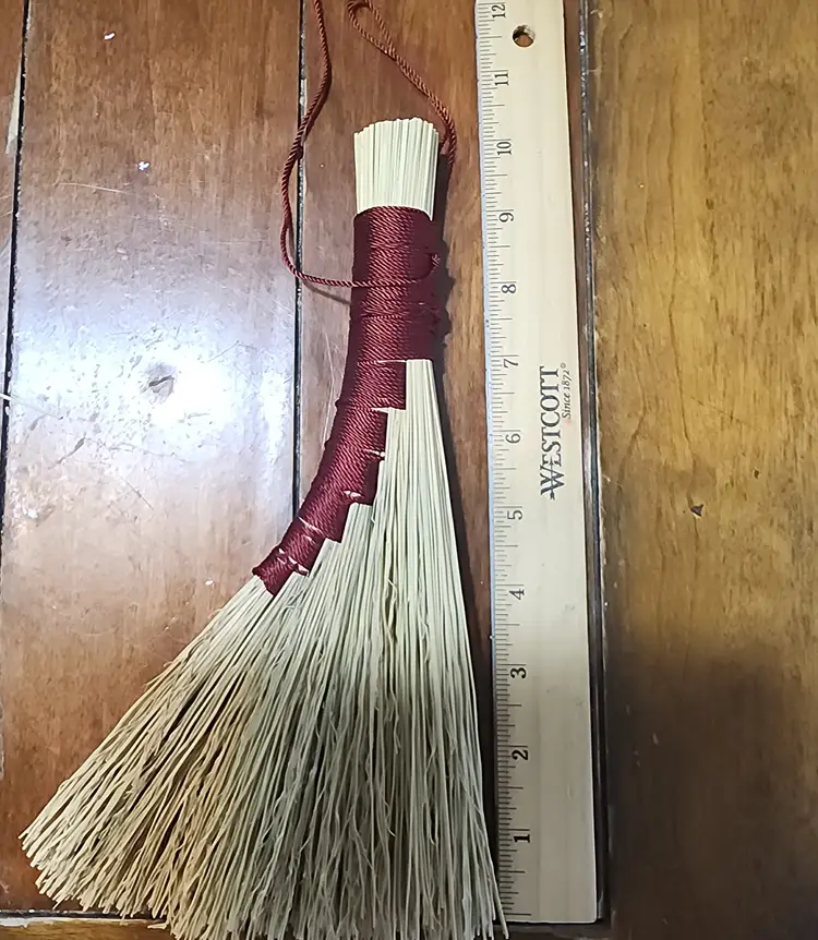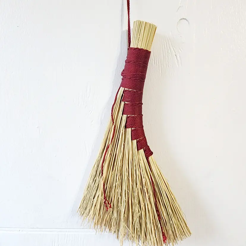 Style: Hen Wing Whisk Twine Color: Burgundy Materials: Broomcorn & nylon twine Size: Approx 10.5 inches tall.