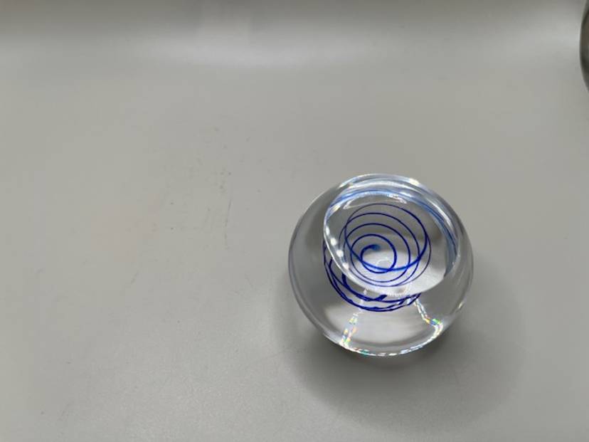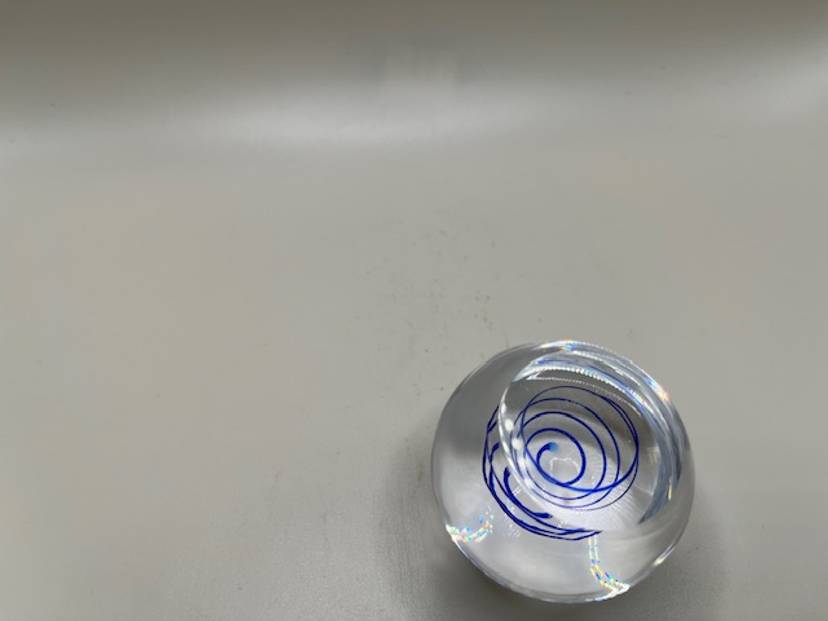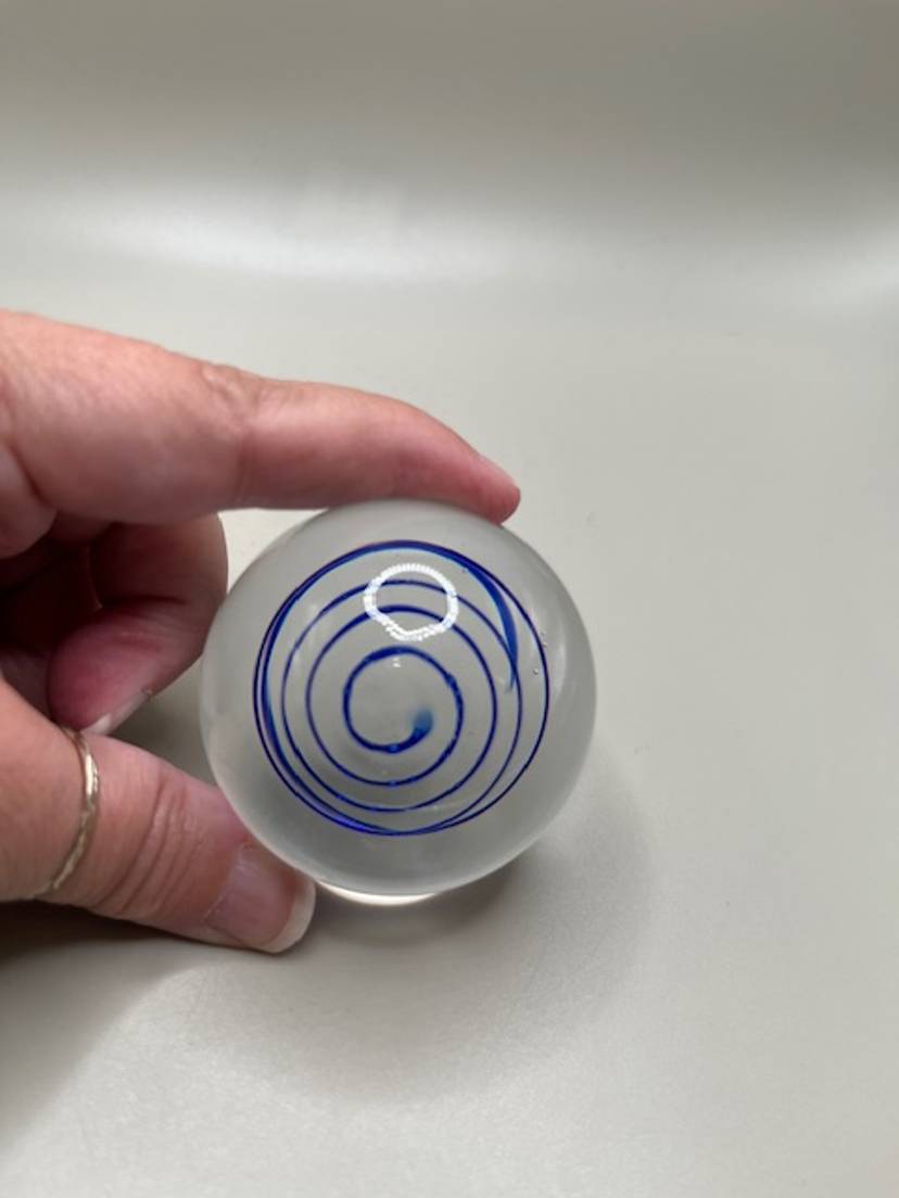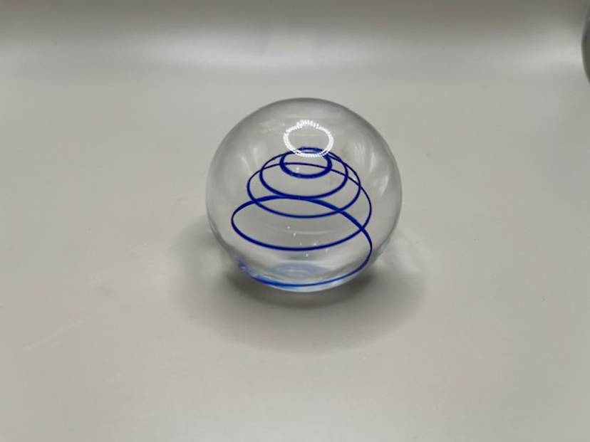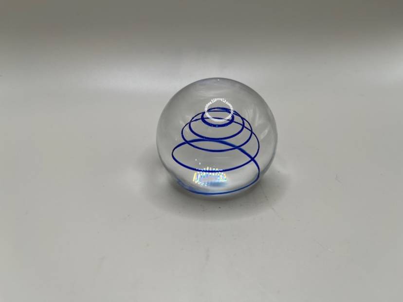 This little paperweight measures 2 inches tall and has a lovely clear base. No chips or cracks.