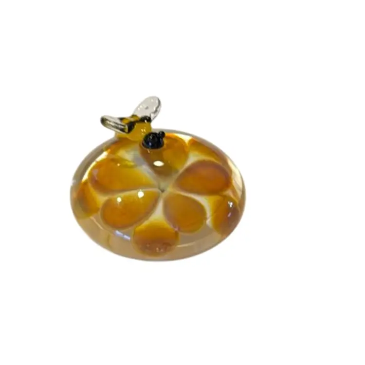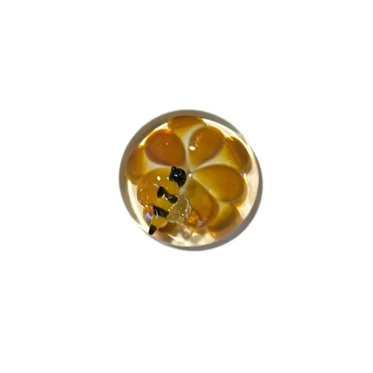 Boomwire Handmade USA Art Glass Miniature Paperweight 3D Bumblebee Of Flower - 2.25”