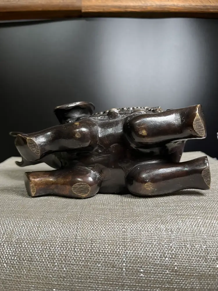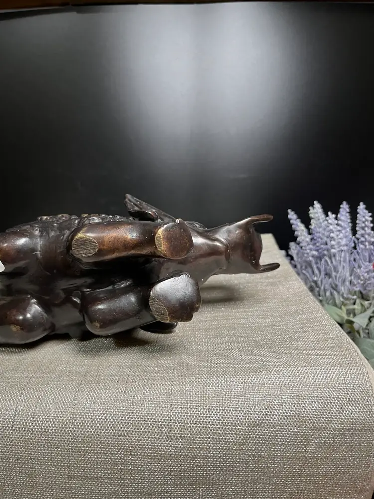 This is vintage and in great condition. There are no call outs. It is playful and fun. Measures approx 5"H, 7.5 W, 3.5" deep, 3 Lbs 12 Oz