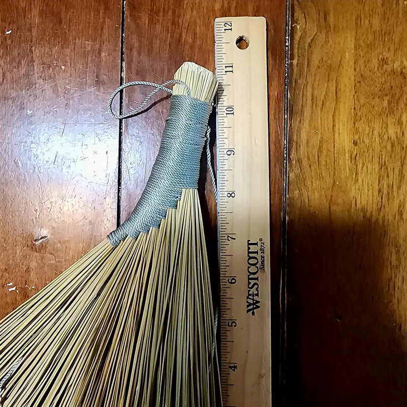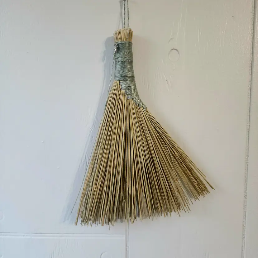 Style: Hen Wing Whisk Twine Color: Silver Sage Materials: Broomcorn & nylon twine Size: Approx 10 inches tall.