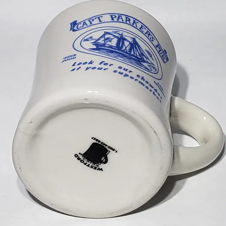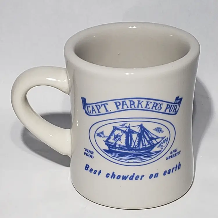 Capt Parker's Pub Best Chowder on Earth Cape Cod Restaurant Ware Diner Mug Westford China Measures: 5" x 3.5" x 4"