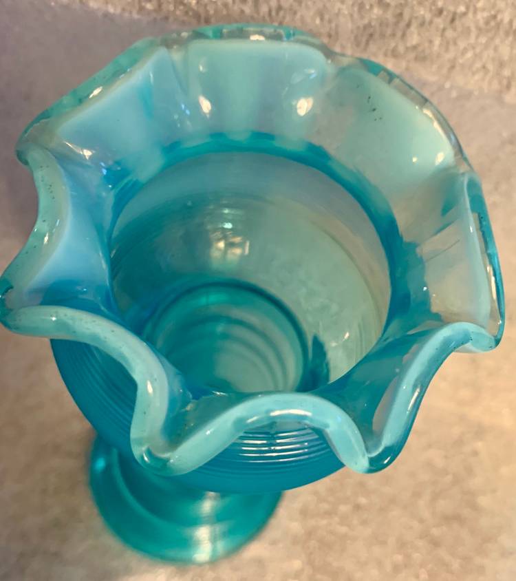 has UV reaction about 6" tall opalescent ruffled top