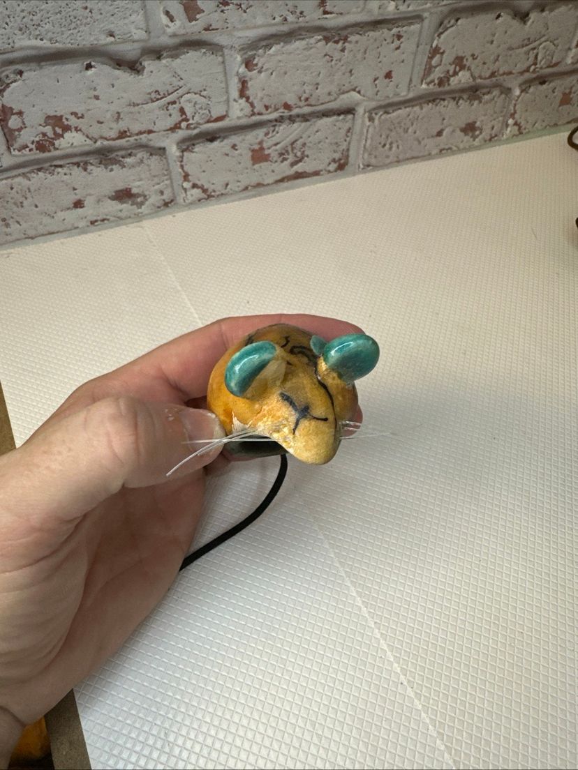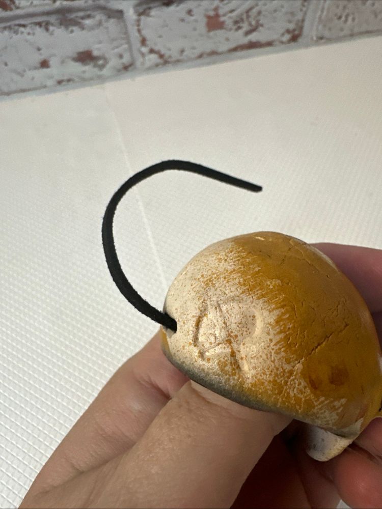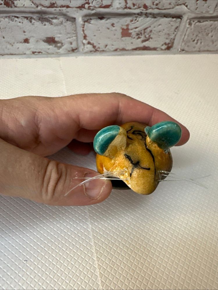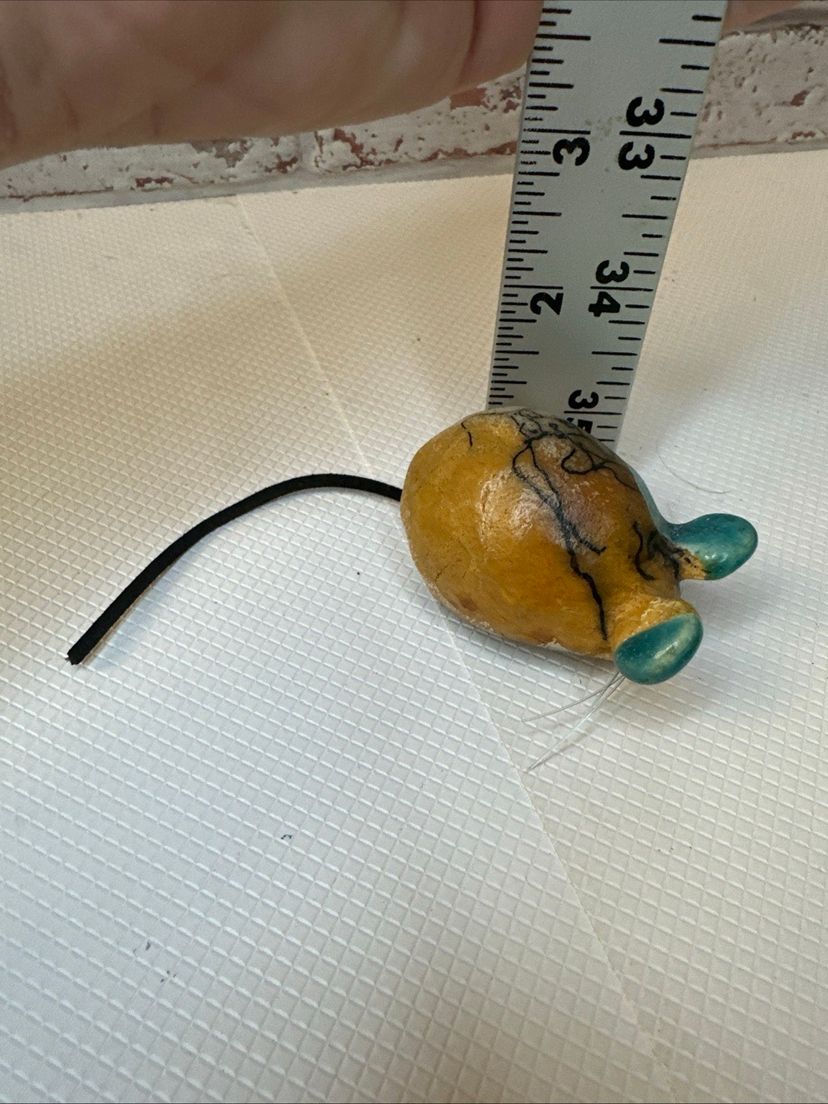 Measures 1.4” tall and has a stamp mark on it and no chipping perfect