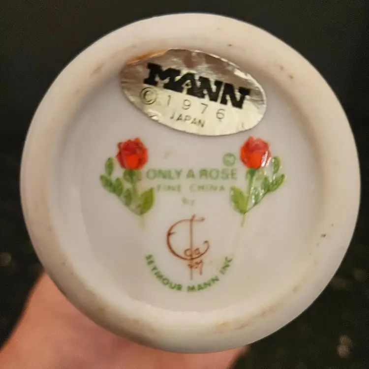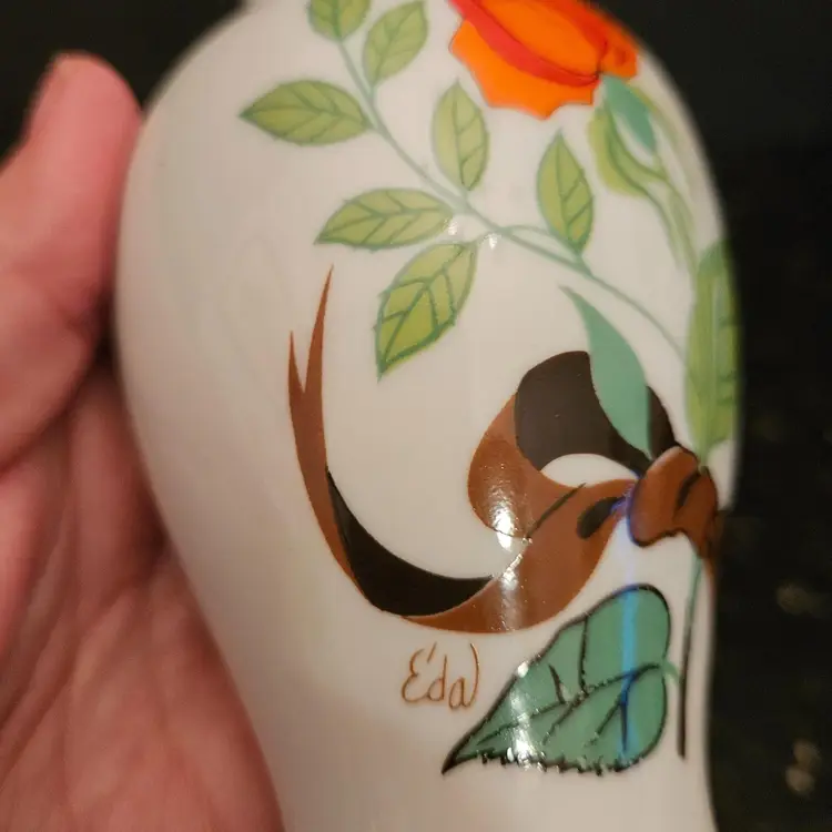 Gorgeous, beautiful details! Rare find. 1976 Vintage Seymour Mann Inc. Signed Eda Vase Only a Rose Design Fine China Porcelain 7” Tall Good pre-owned condition. No chips or cracks. Clean with no stains. Please see pictures for more details. Seymour Mann Inc. sticker on bottom.