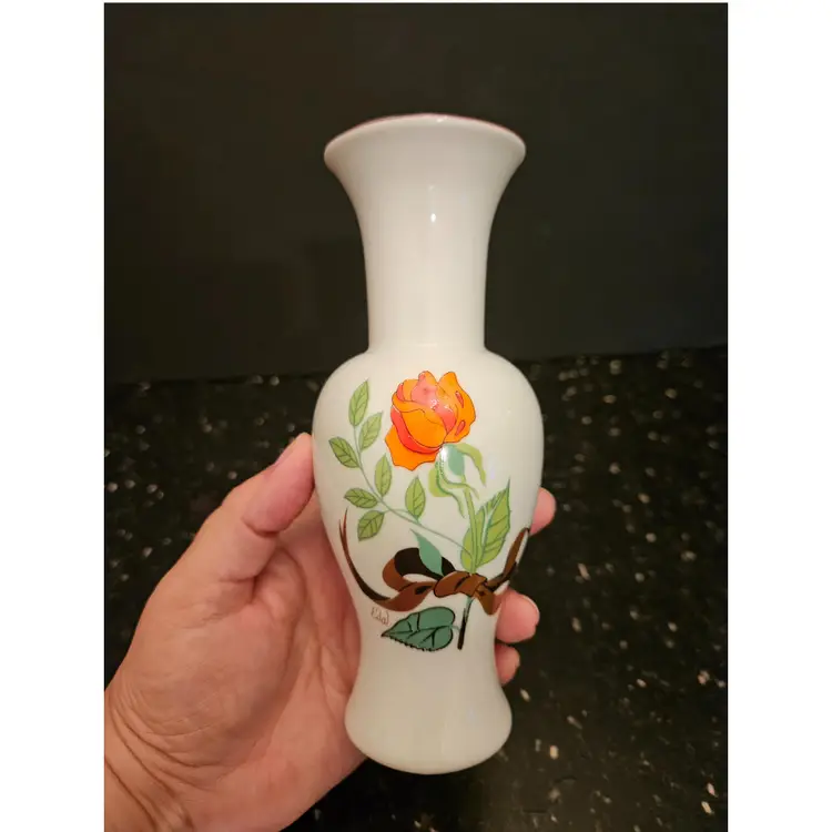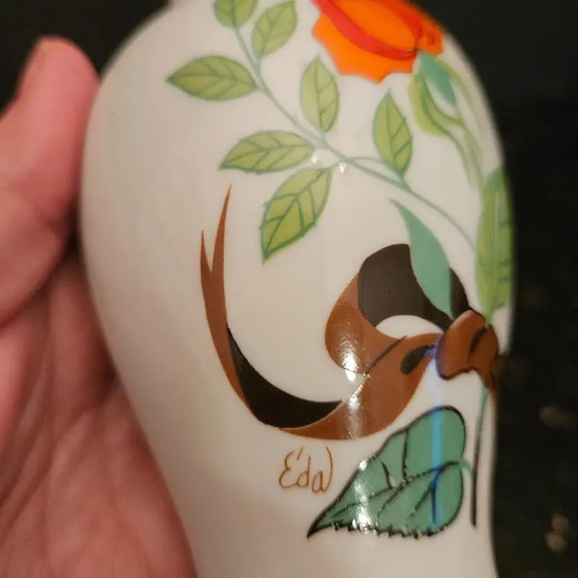 Seymour Mann Only A Rose Vase Vintage 1976 Signed Eda Orange Rose RARE! Porcelain