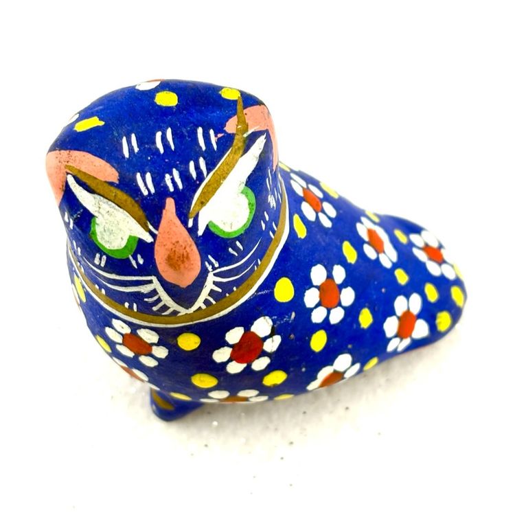This type of Mexican pottery is typically made in the Oaxacan area of Mexico. The yellow glows. There are no chips or cracks but there is smudging on the face.