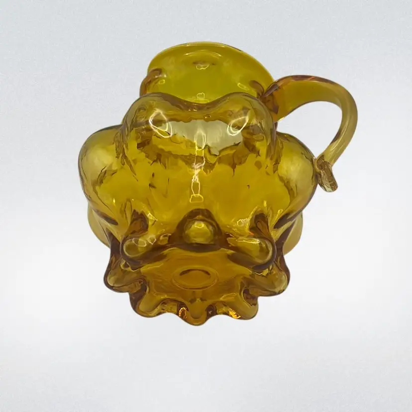 Featuring Amber glass with a ribbed melon shape and an applied handle. Very unique design and in mint condition!
