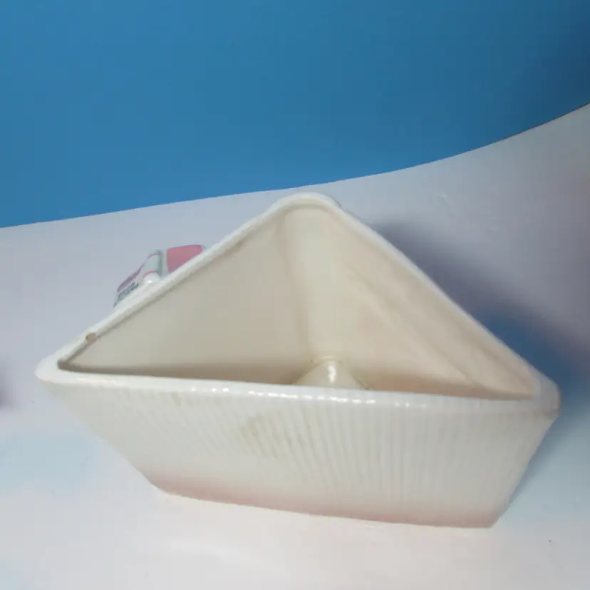 This fun planter has some crazing and a small chip on the inner rim, but still an adorable piece to use and display. It is about 5" x 6 1/2" x 3 1/2". This is shipped from a smoke free home. Thanks for looking!