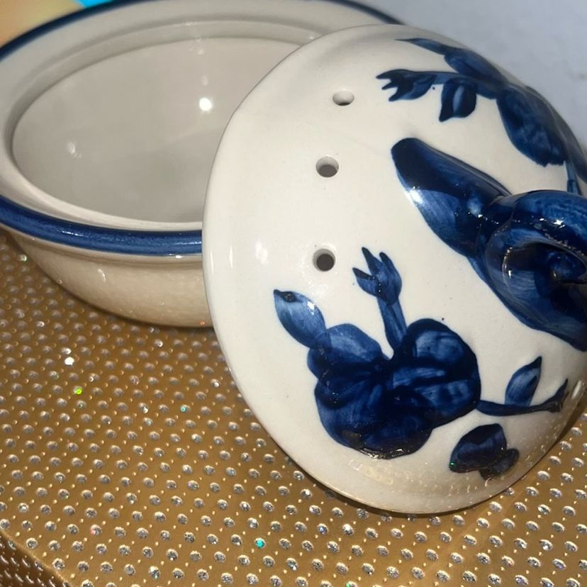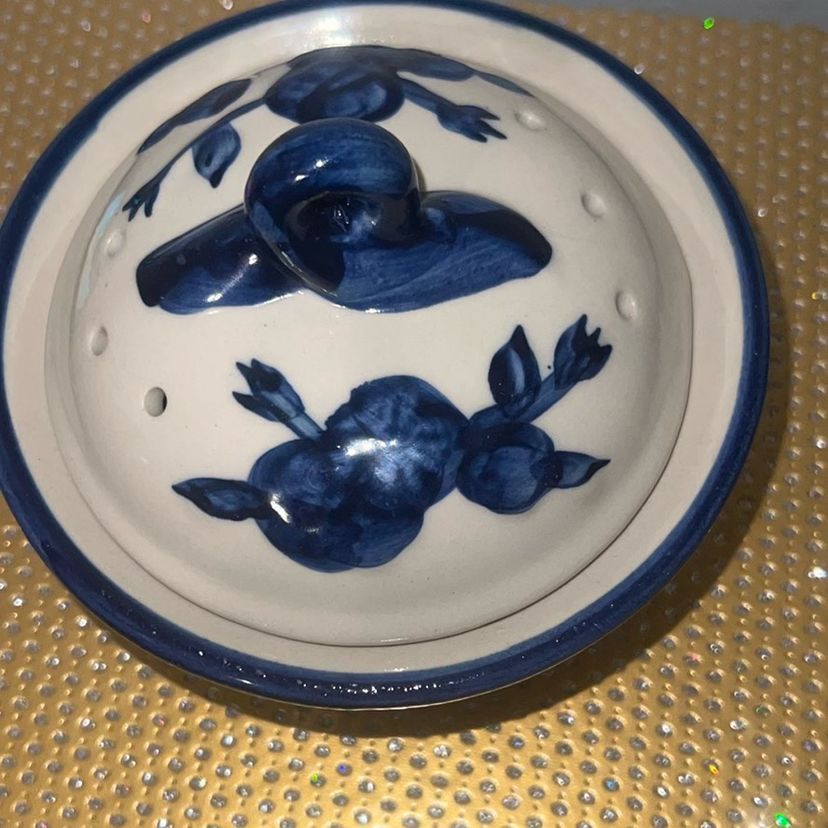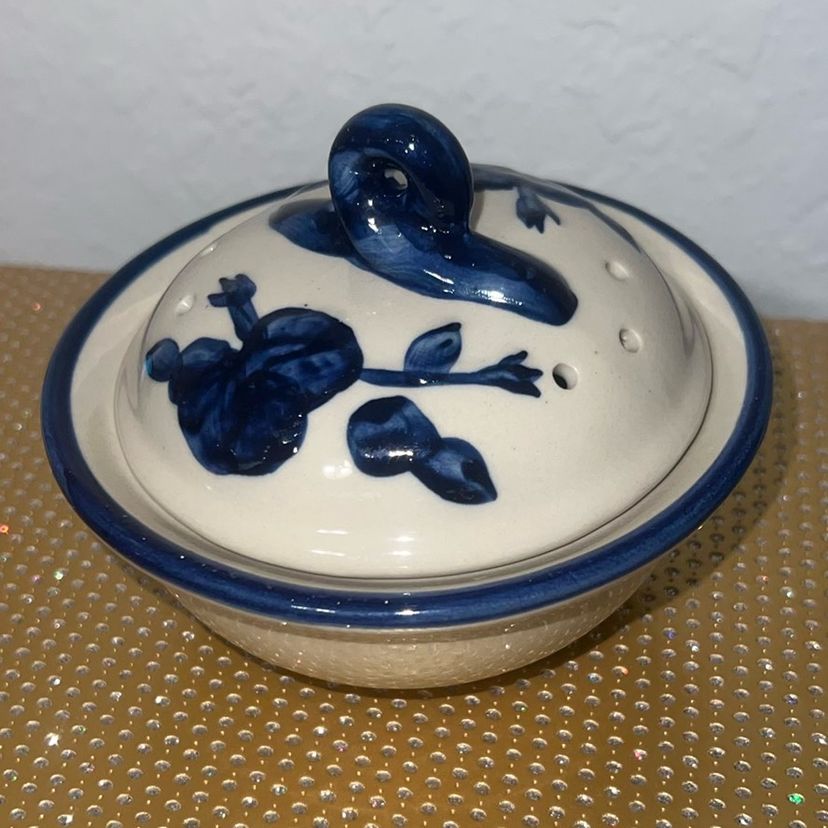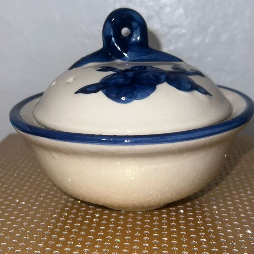 Small vented ceramic garlic keeper with lid. Perfect condition.
