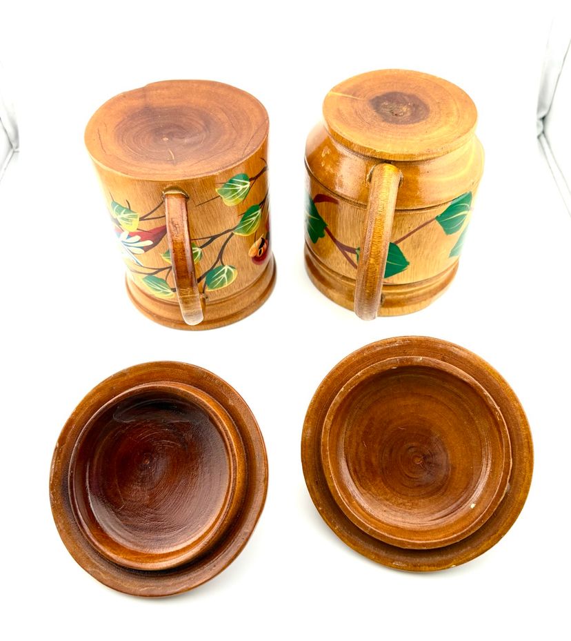 Hand painted wooden mugs can be used to hold straws for drink stirrers. Add them to your tropical/tiki decor.