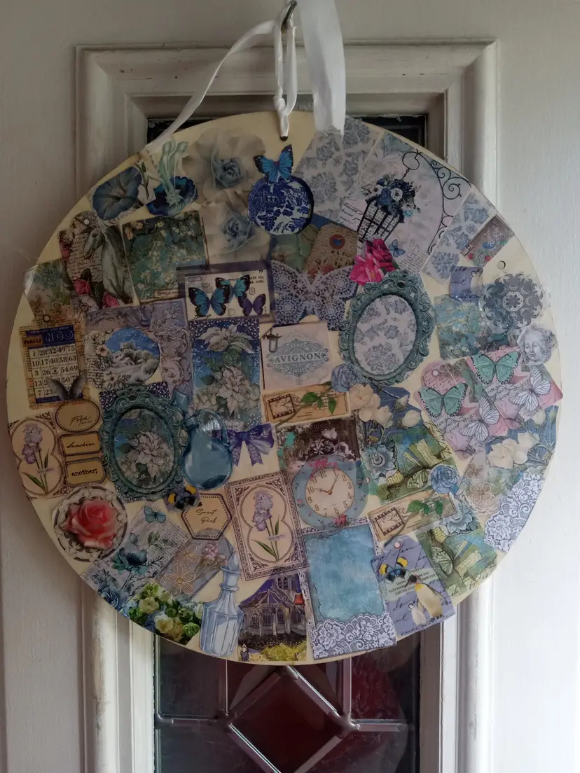 Decoupage door hanger made with pretty blue Victorian pictures MADE BY ME