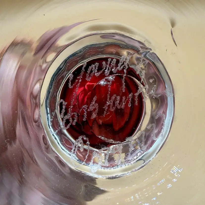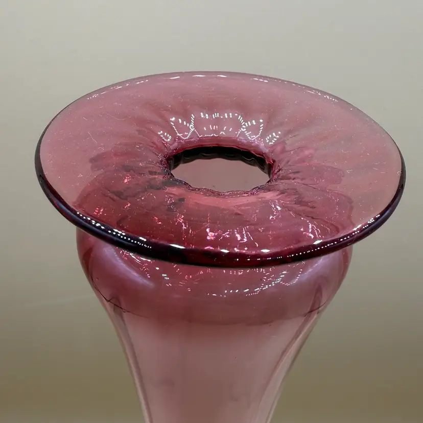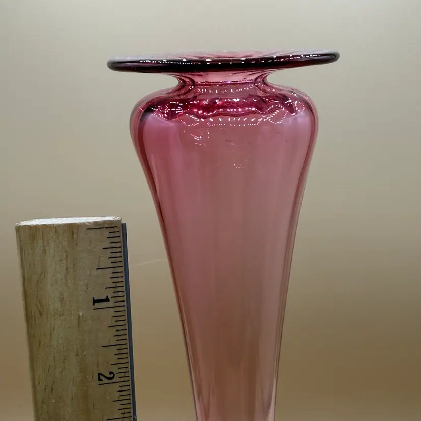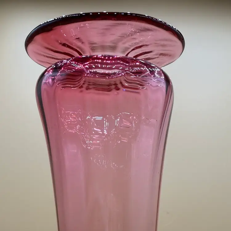 #01 Young & Constantine Cranberry Optic Glass Pedestal Vase Signed And Numbered 14”