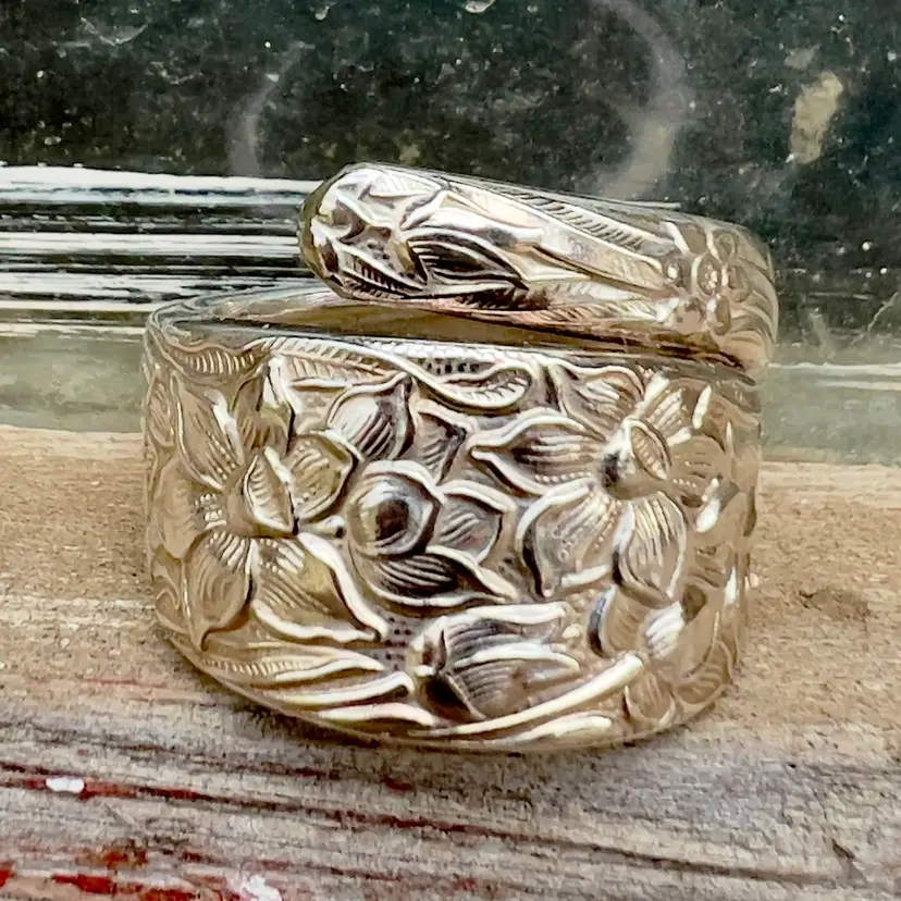 This spoon ring as well as the others in this style (SPIRAL) can be sized up or down. As pictured size is 9 ***IF YOU NEED THIS RING SIZED PLEASE SEND ME A CHAT AFTER PURCHASE