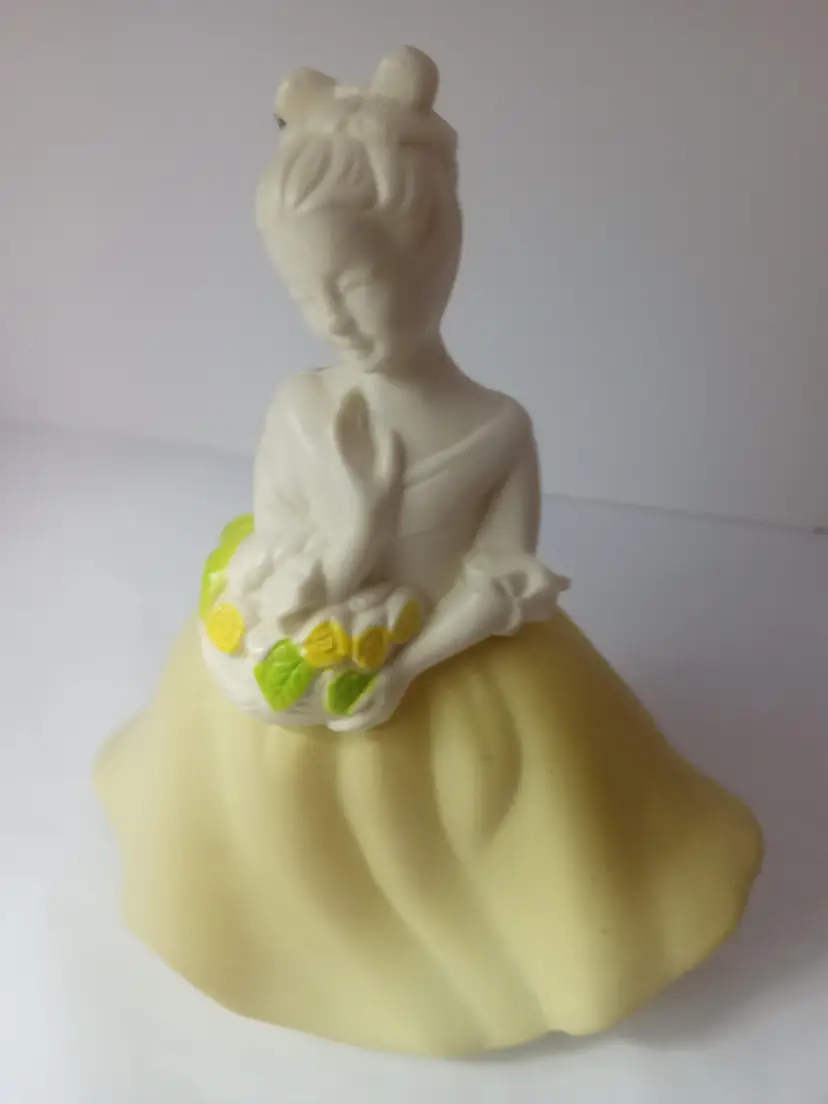 ceramic lady figurine with yellow dress with flowers and a little bouquet