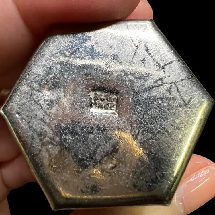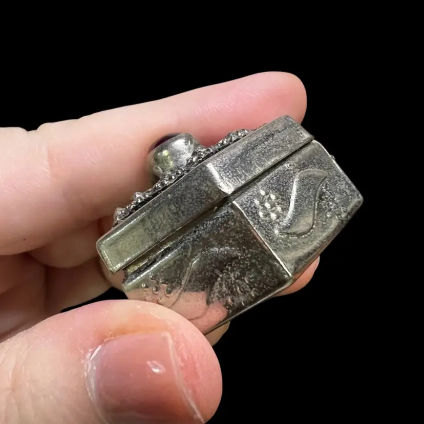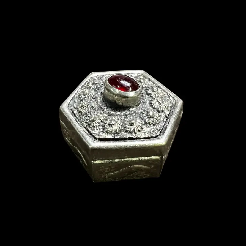 Possibly Sterling silver. It is marked as hand made. Not sure about the stone.