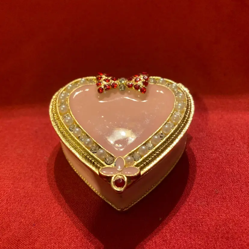 07. Metal Enamel Stoned Heart Trinket Box