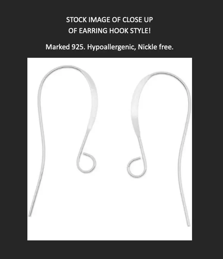 Close up stock image provided of earring hook style. Note: Colors in photographs may vary slightly from actual colors.