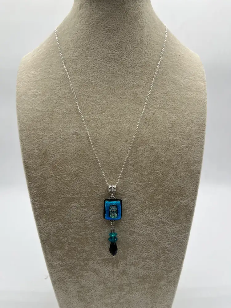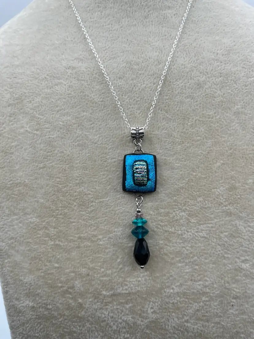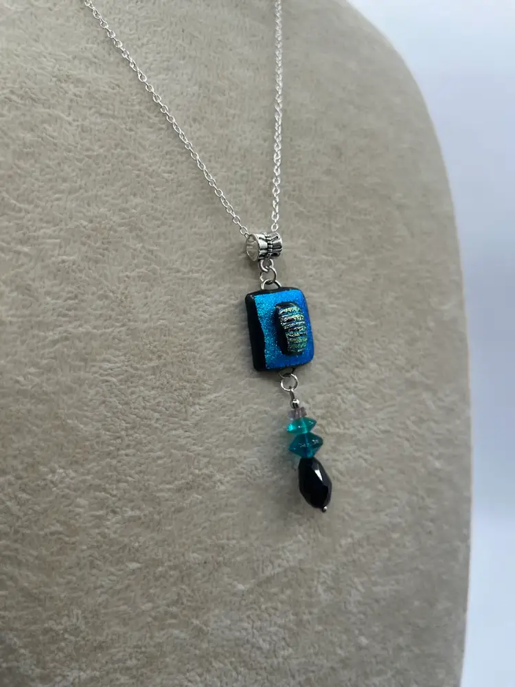 Materials: Handmade (not be me) dichroic glass and glass accent beads. Necklace is not silver.