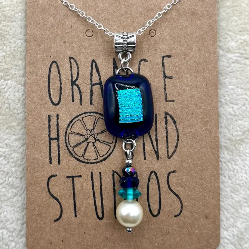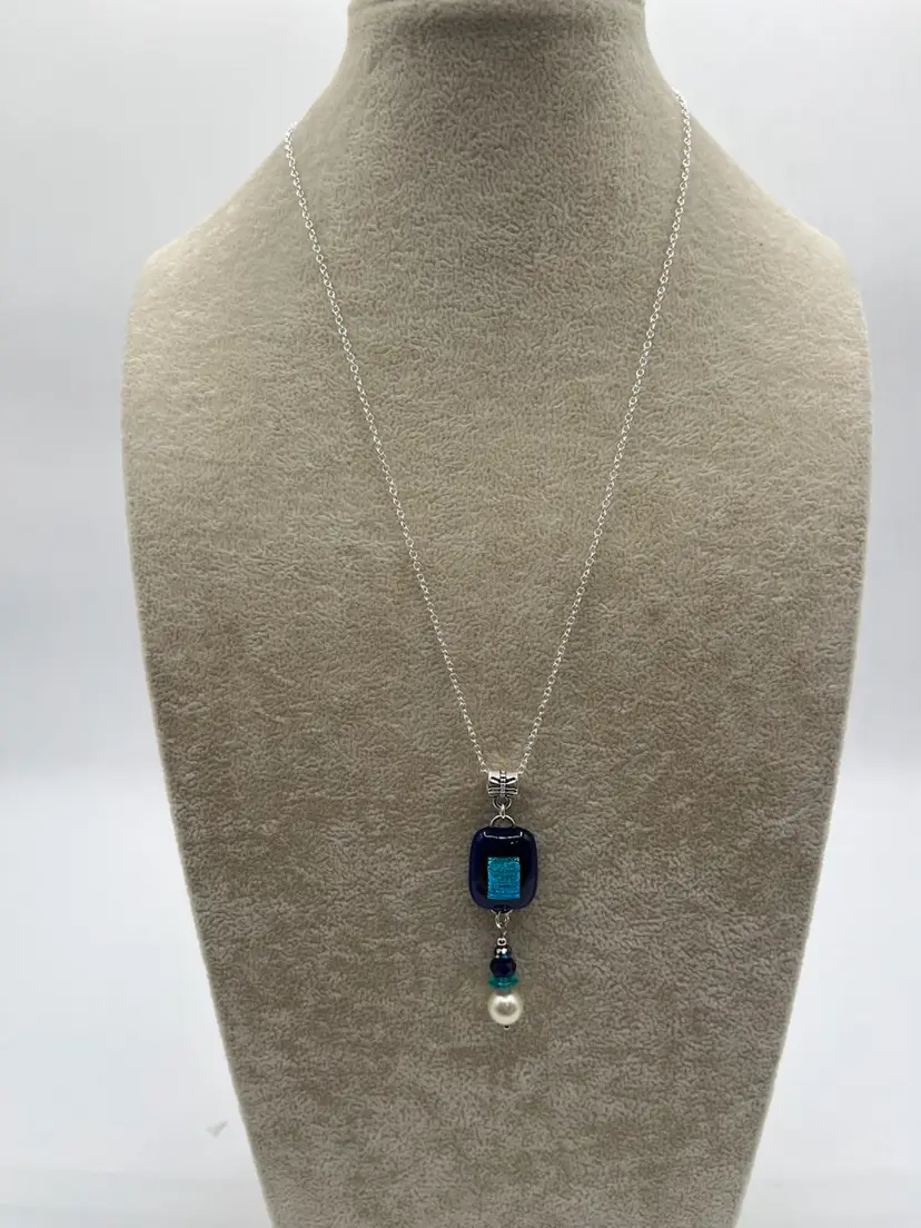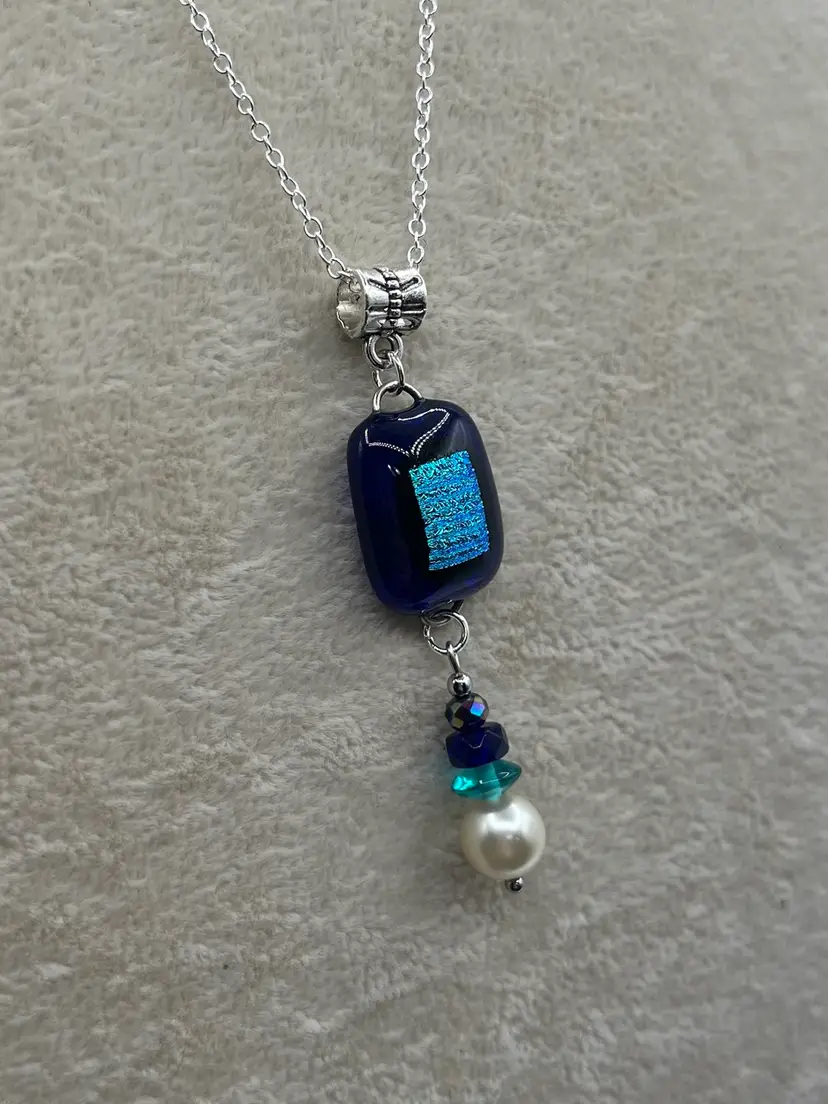 Materials: Handmade (not be me) dichroic glass and glass accent beads. Necklace is not silver.