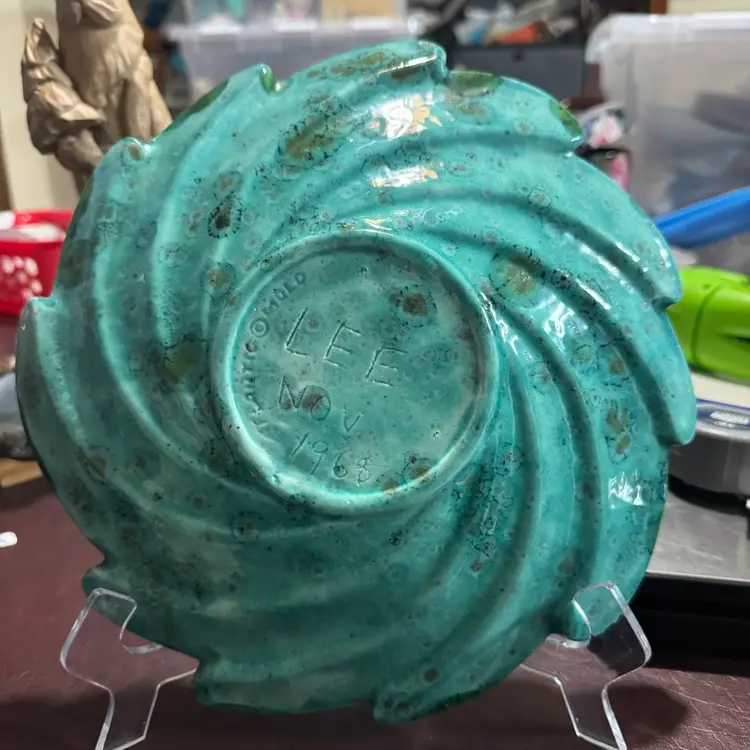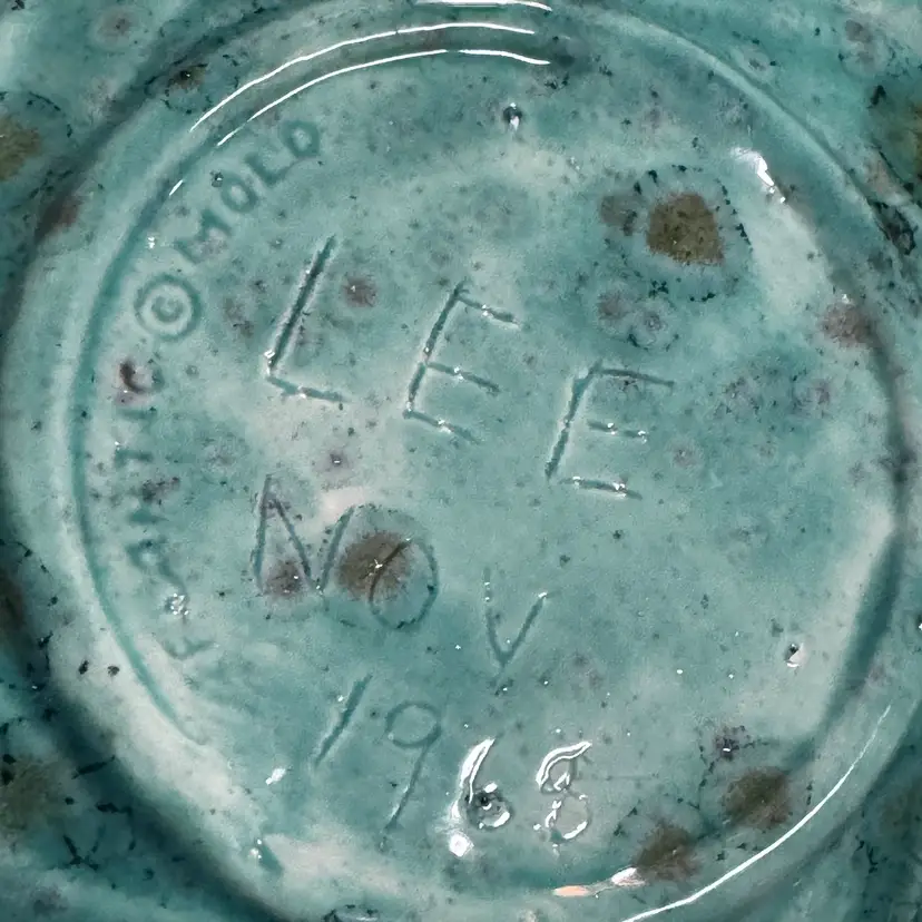 10.6” Atlantic Mold 1968 Signed LEE Blue Green Bowl Dish