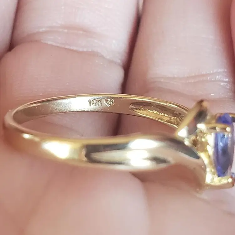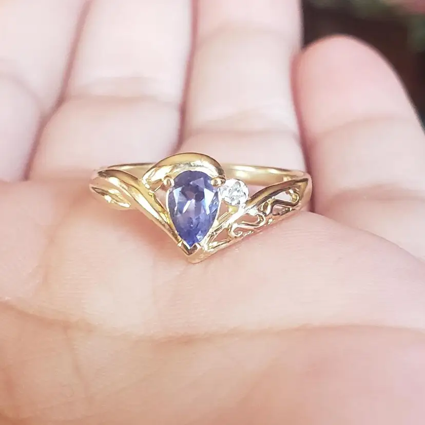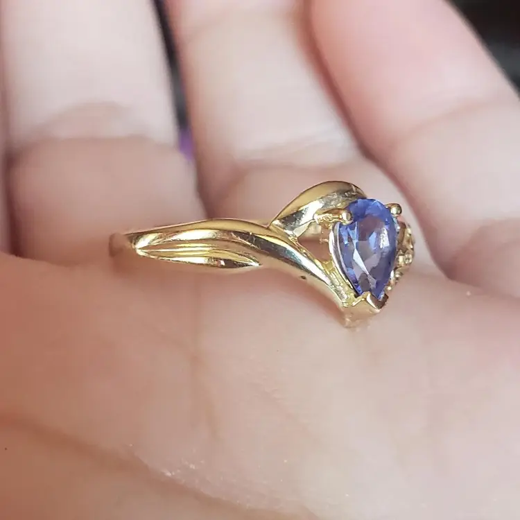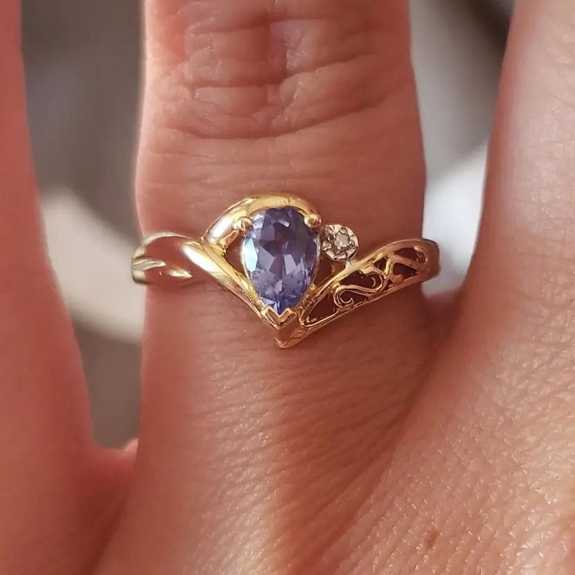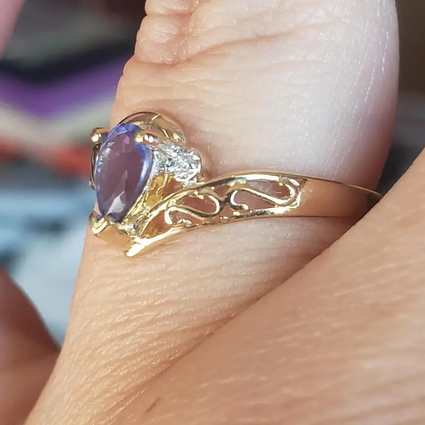 10k Solid Yellow Gold* stamped 10k OR(OroAmerica)* size 7* little wear/like new* pear shaped tanzanite with genuine diamond accent*