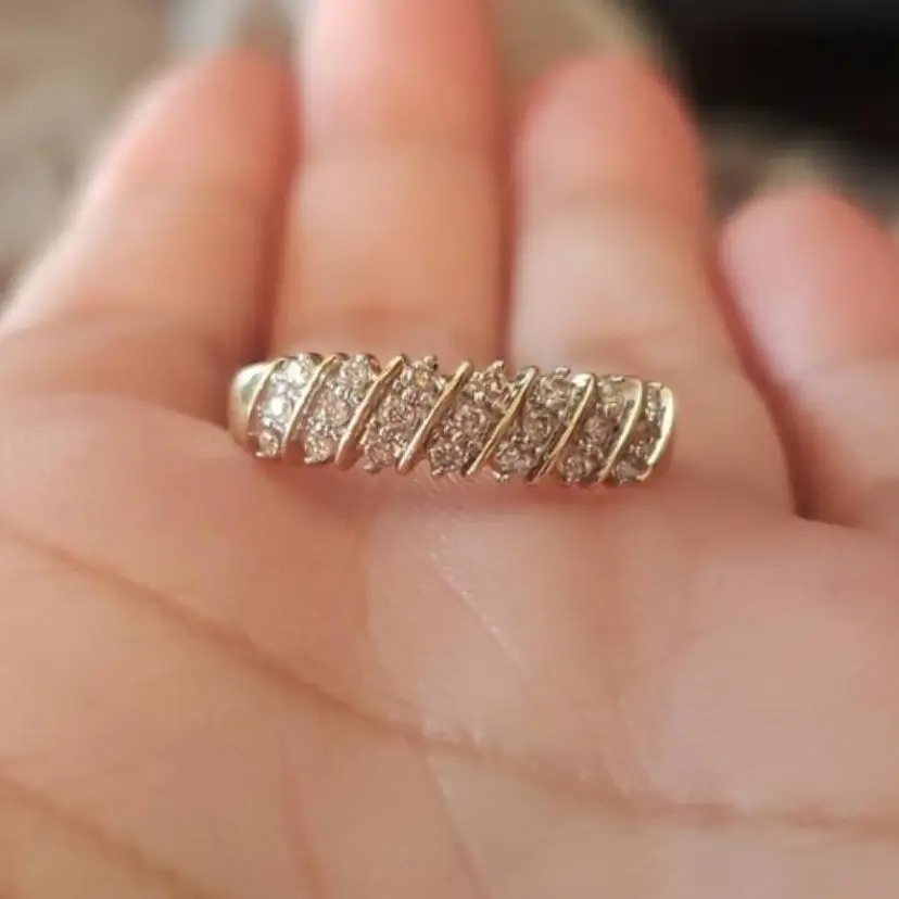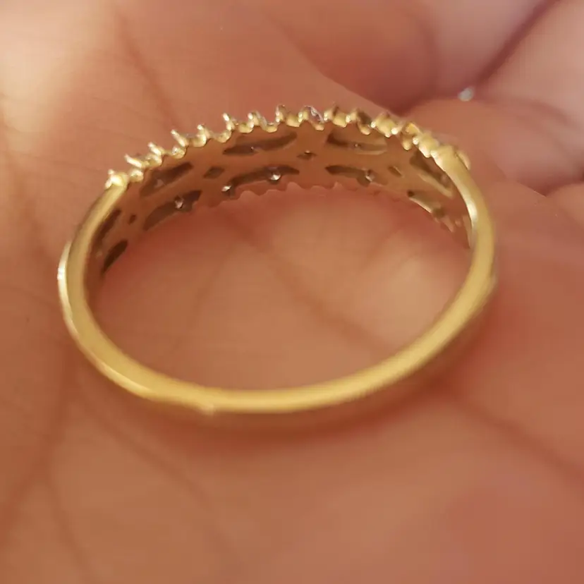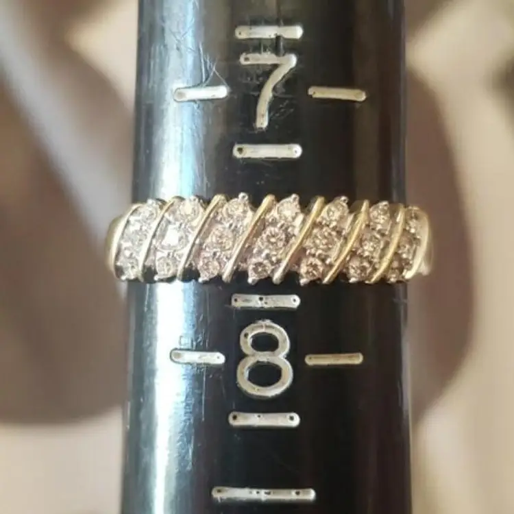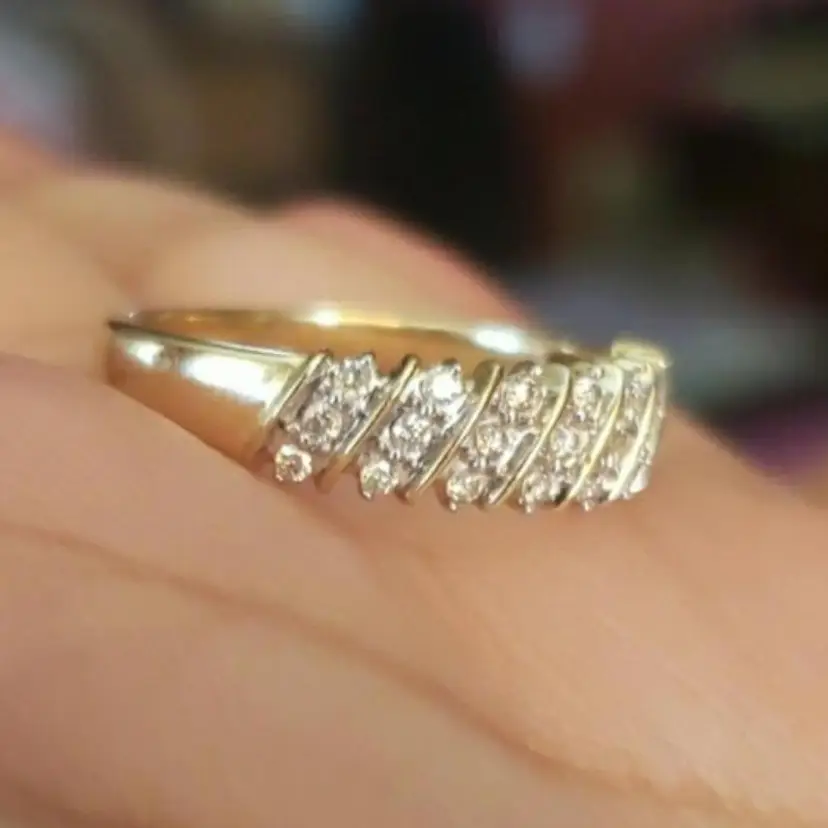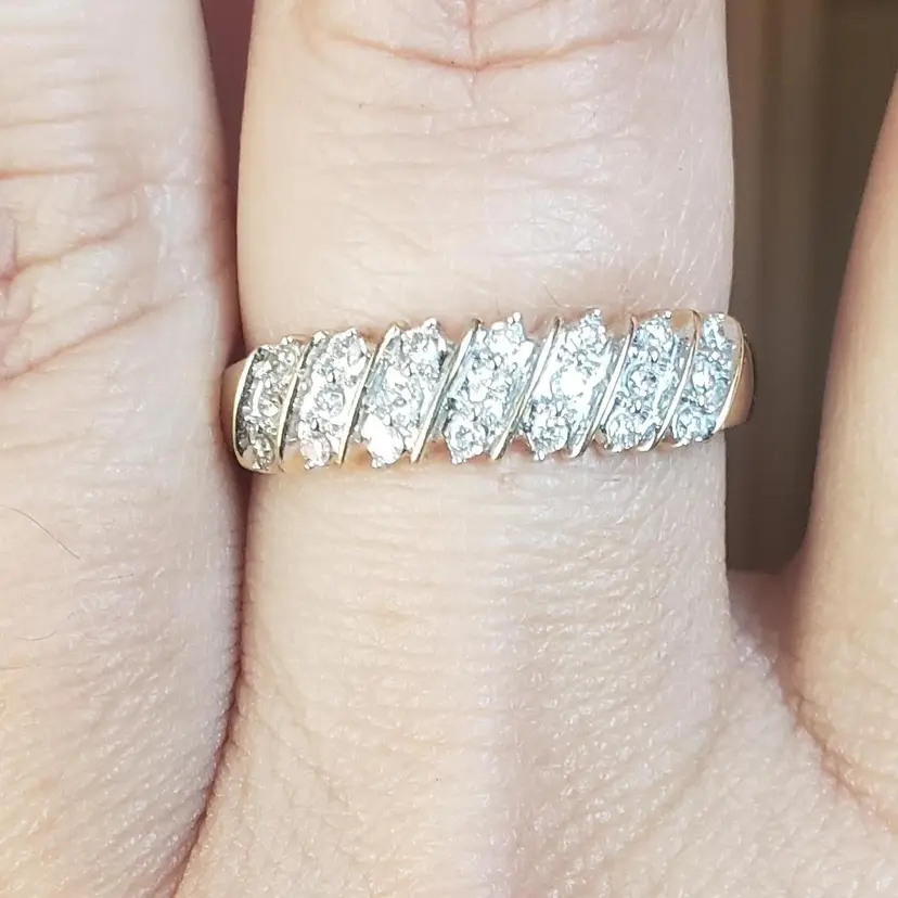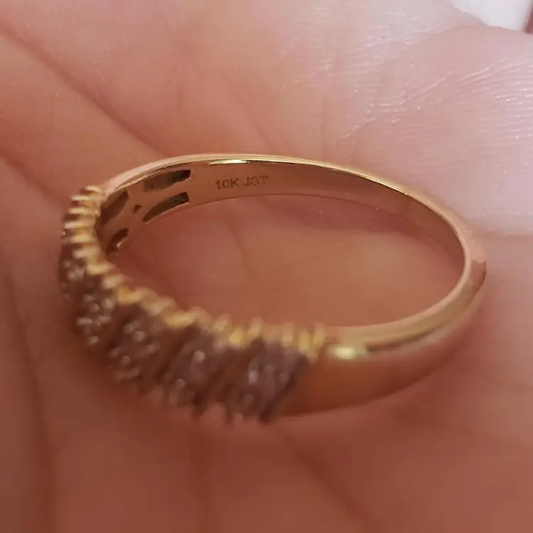 10k Solid Yellow Gold* stamped 10k JST* .20ct tw round cut genuine diamonds(1/5 ct)* size 7.5* light wear on band* Retails over $700 new*