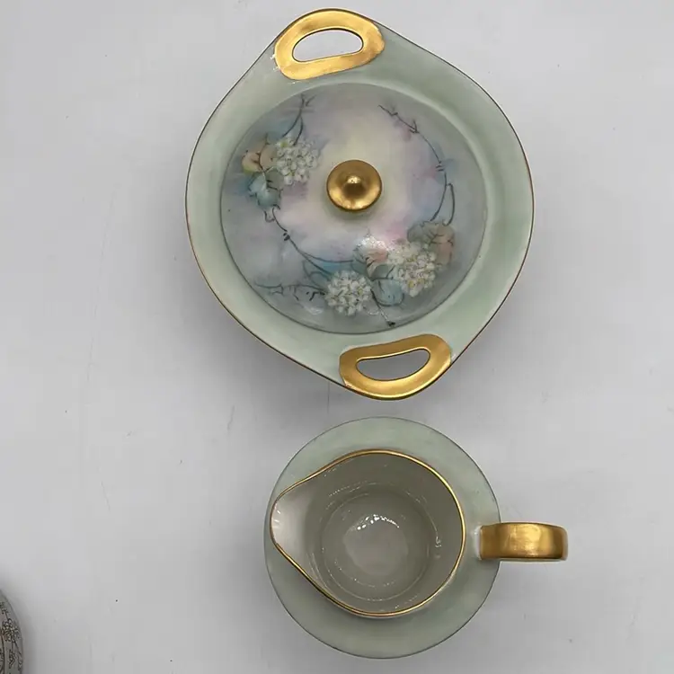 #11 Vintage Hand Painted Theodore Haviland Limoge France Creamer & Lidded Sugar Set