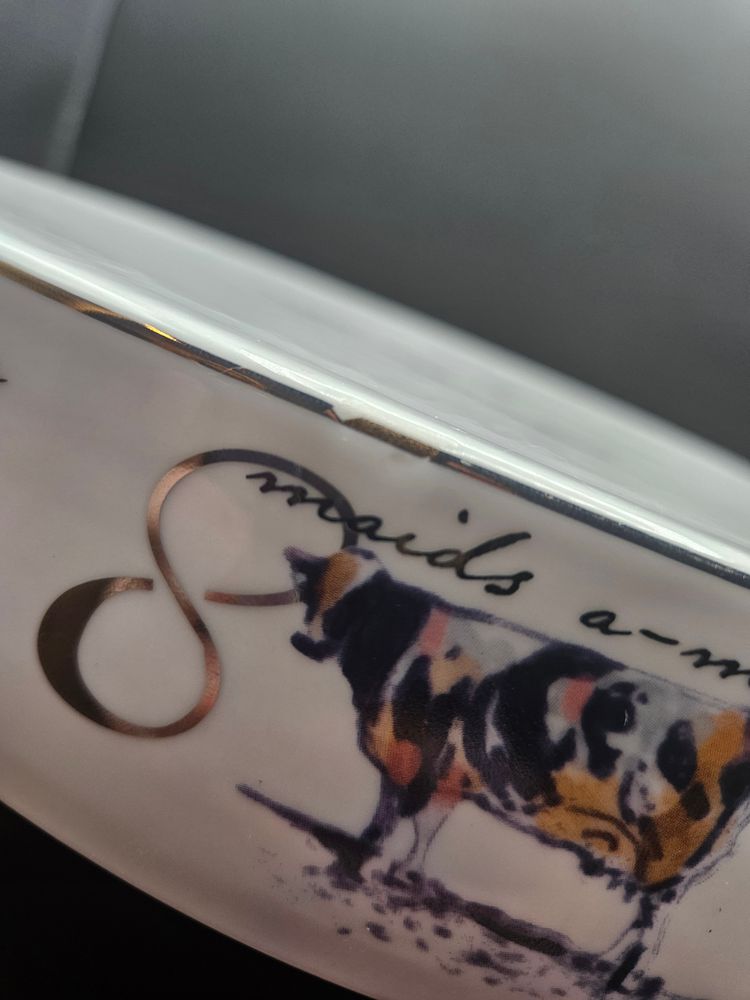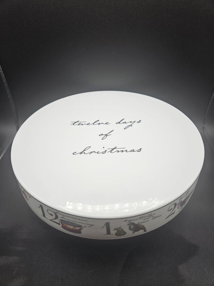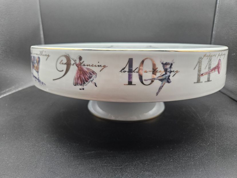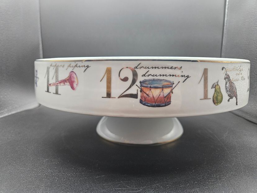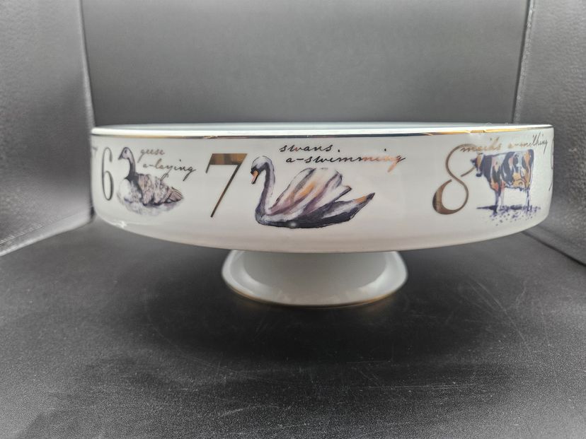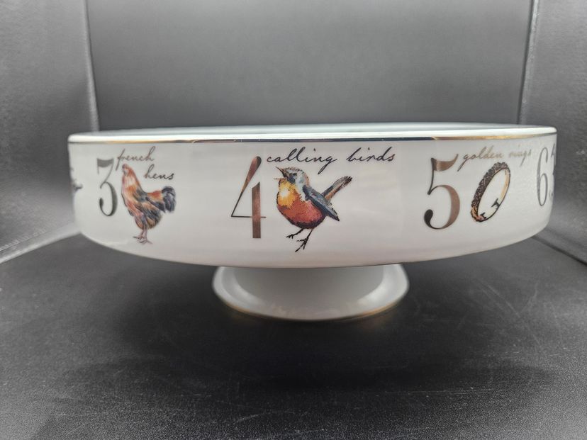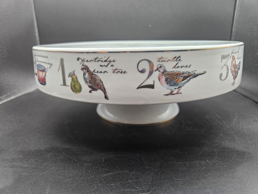 Beautiful cake stand! There is a slight manufacturing flaw about the 6, other than that it is in great condition. This is a hefty 5.6lb cake stand! Please see photos for details, sold as is.