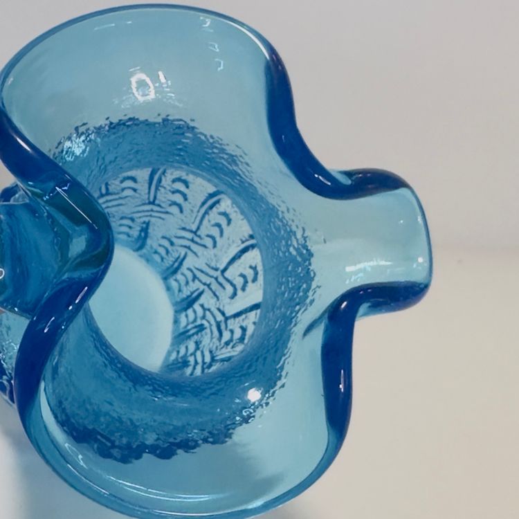 9oz, applied handle wavy top 1950-70’s, depth 3” 4.25x4x3,