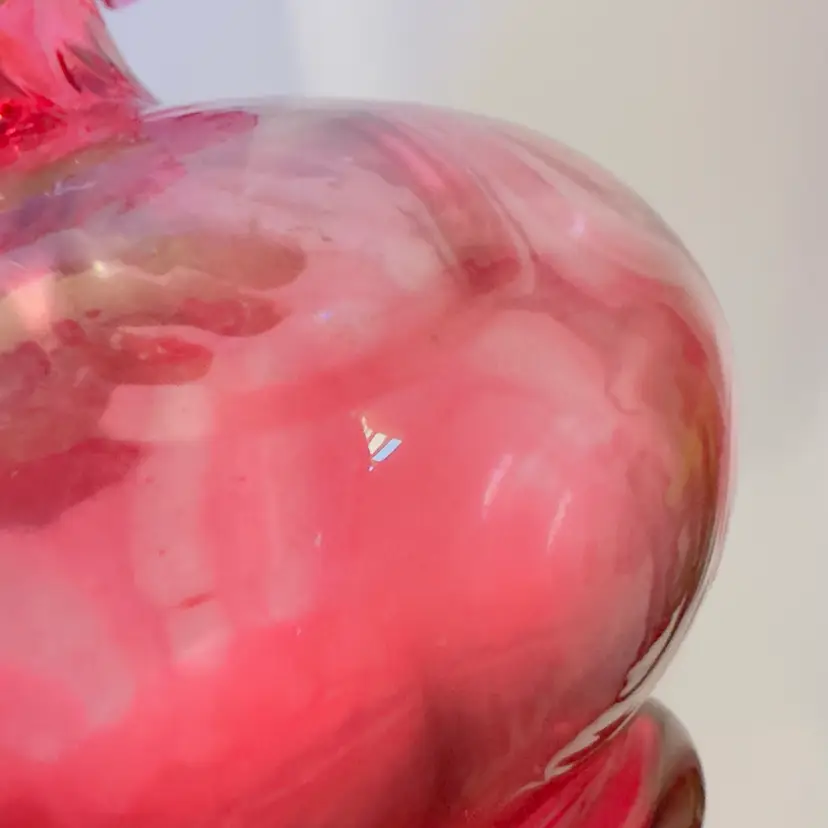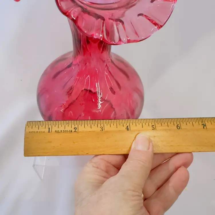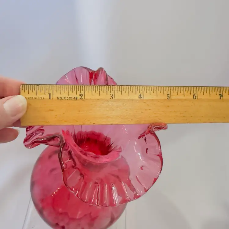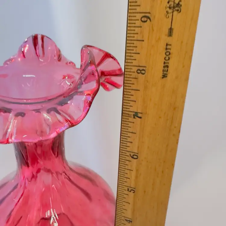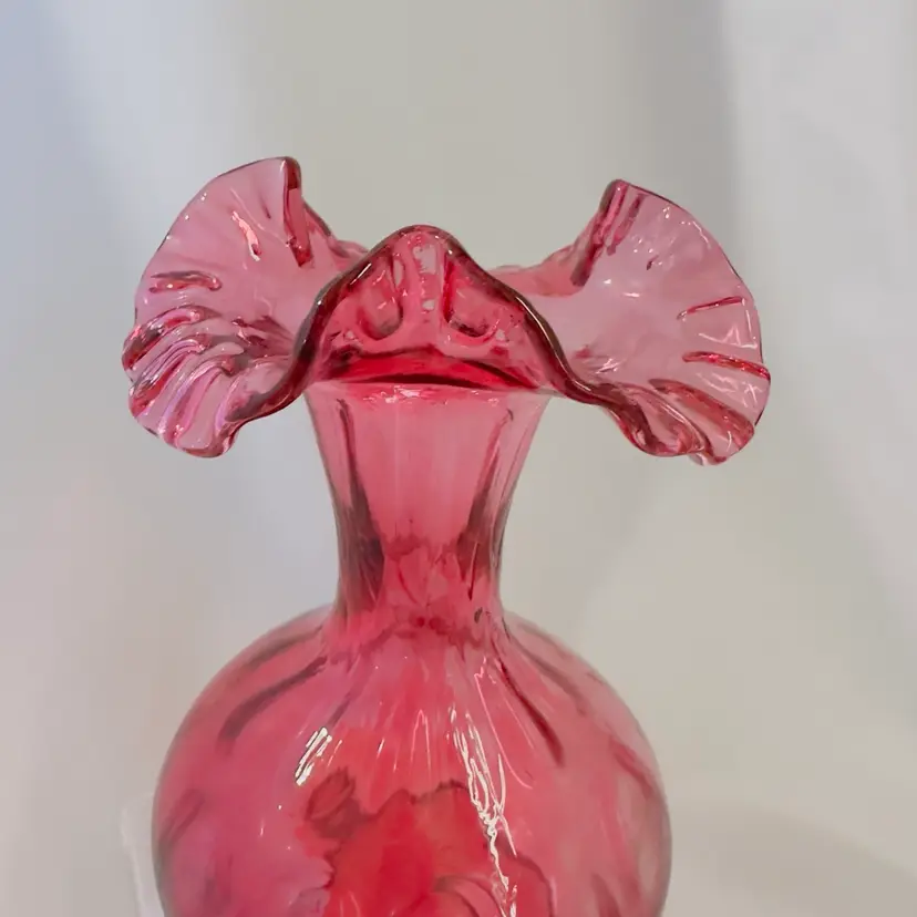 #1596 Fenton Pink Cranberry Glass Coin Dot Ruffled Edge Vase