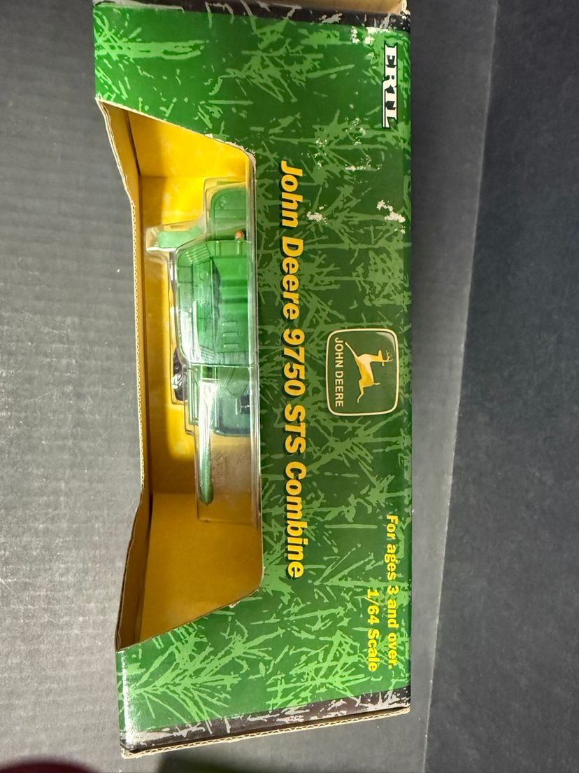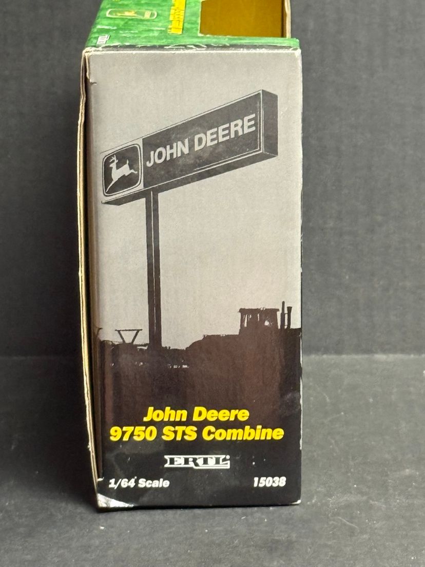1/64 J.D. 9750STS combine with 12 row corn head and green head 2000 model still in original package. Vintage.