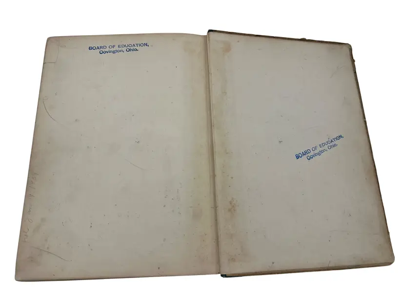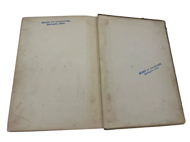 Former school copy (Covington, Ohio) with owner inscriptions and library stamps; cloth shows moderate to heavy wear and spine fray; pages toned from age but complete and usable. See pictures for further details on condition.