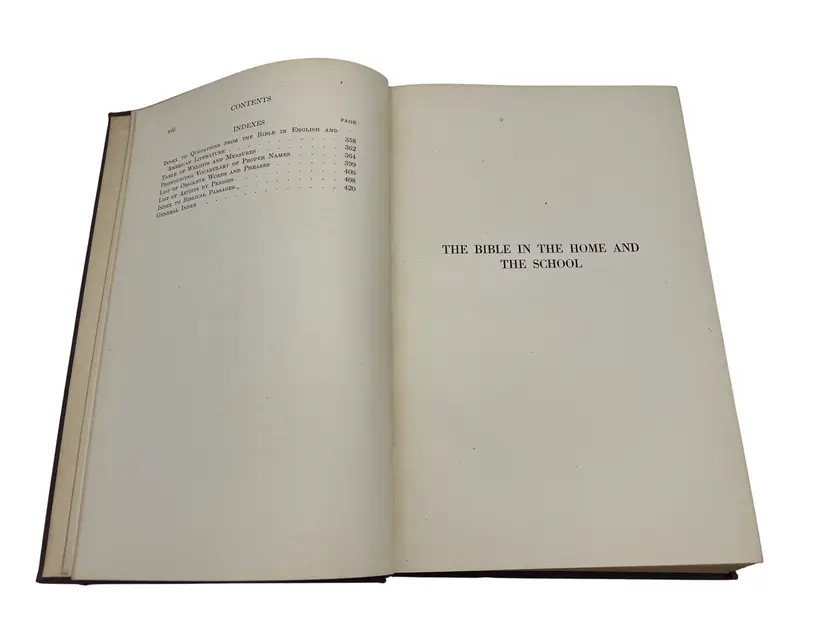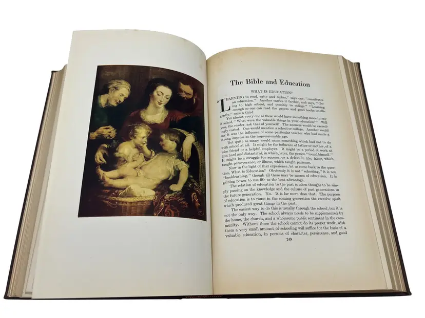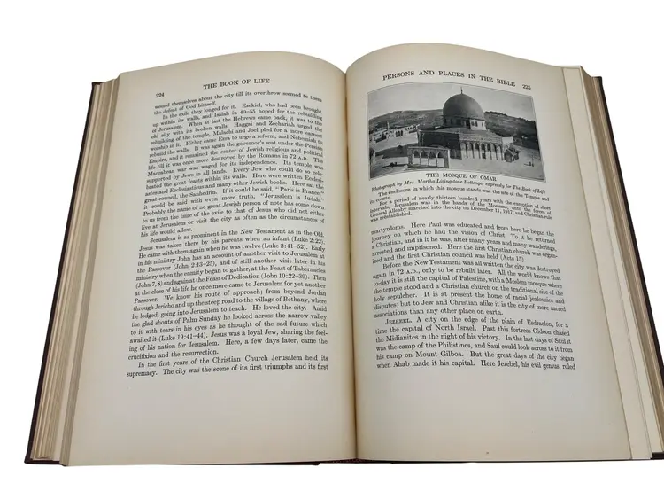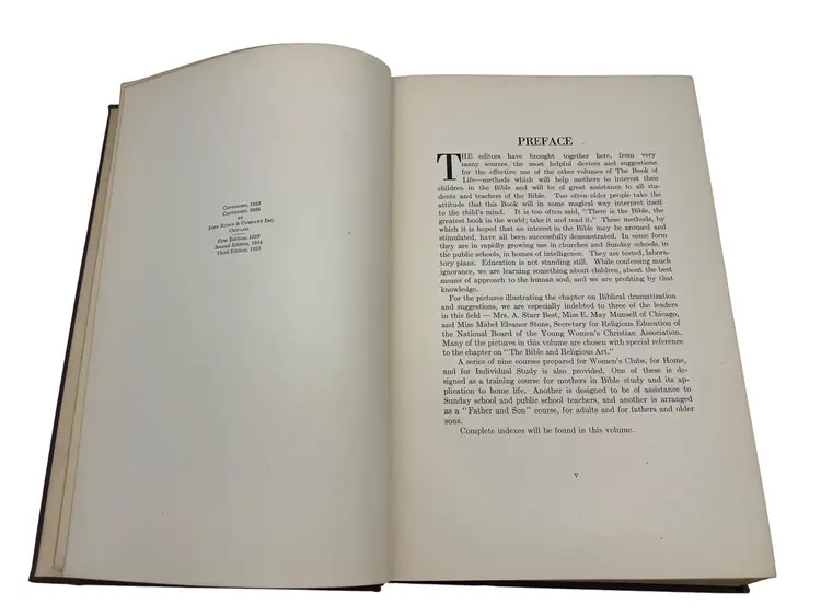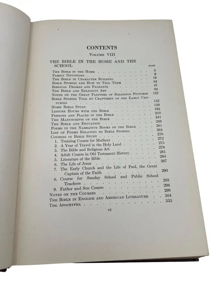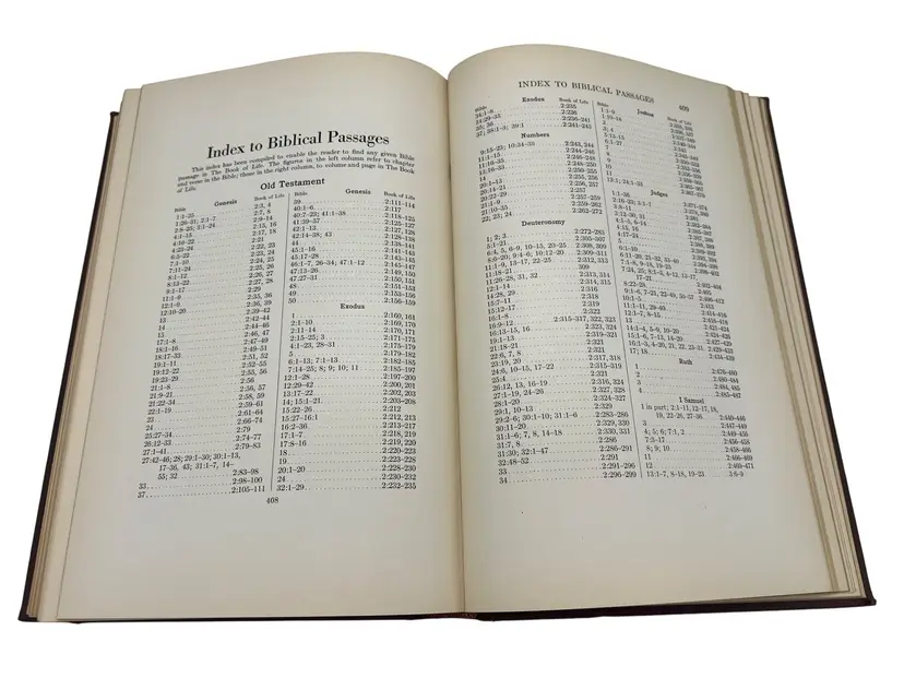 Volume Eight of The Book of Life, the reference-heavy “Bible Educator / Indexes” volume from the Hall & Wood series. Third edition (1925), published by John Rudin & Co., Chicago. Includes guidance for home and school Bible study, sections on religious art and literature, and a large suite of indexes (quotations, names, subjects, biblical passages, etc.). Illustrated with color and B&W plates. Measures about 9.5" x 6.25"; 487 pp.
