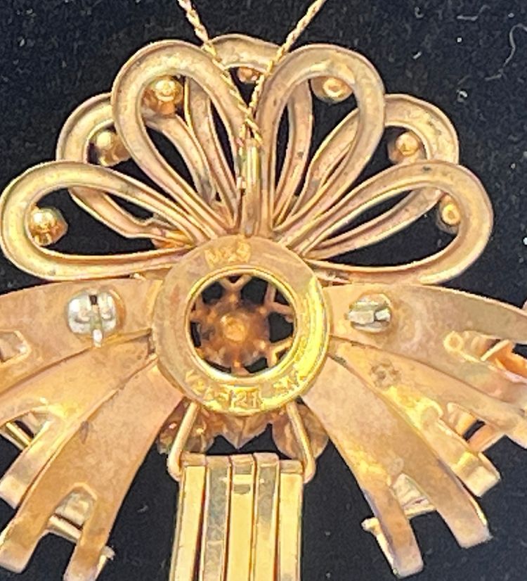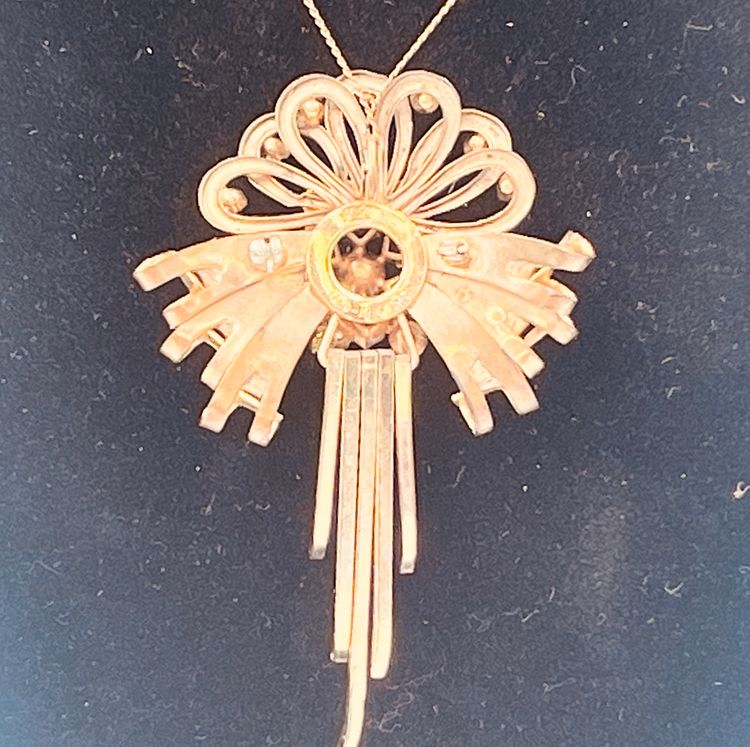 Stunning and elegant gold filled waterfall necklace. No issues found. It is marked on the back 12K GF and M&S Own a piece of stunning 1940s jewelry