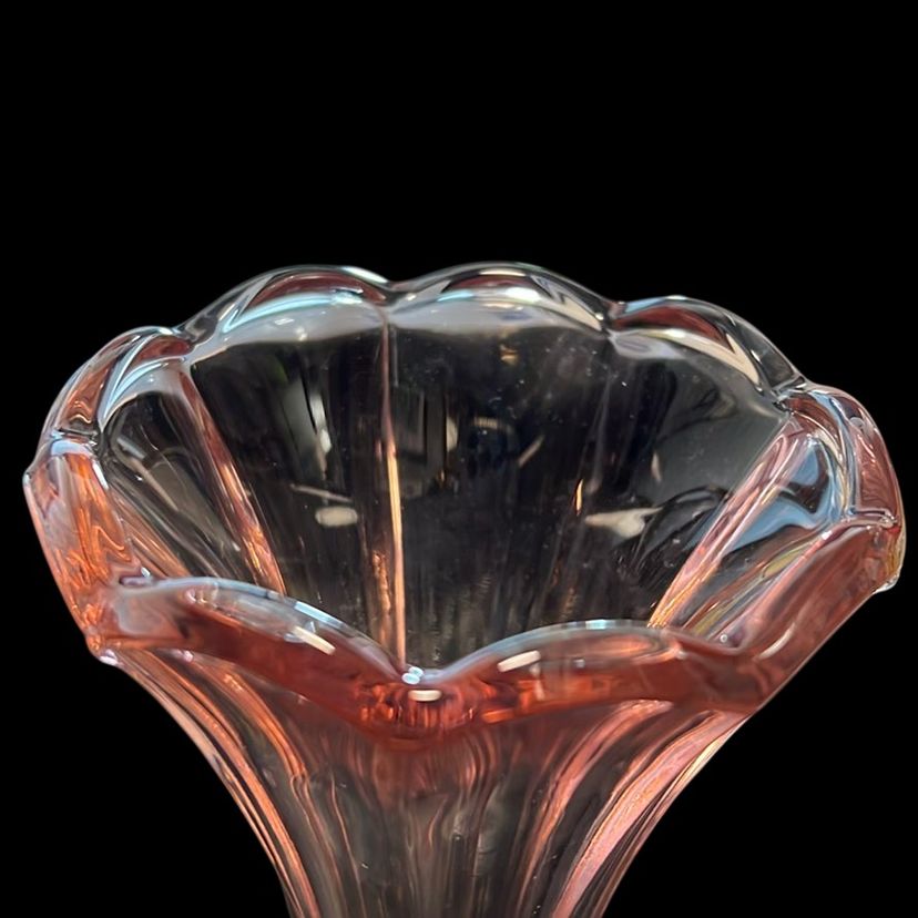 1950-1960 pink Fostoria Glass Company 'Virginia' pattern ribbed vase.7”
