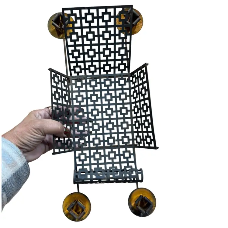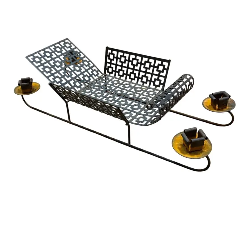 1950s Mid-Century Modern (MCM) black perforated metal Christmas holiday sleigh Candle Holder