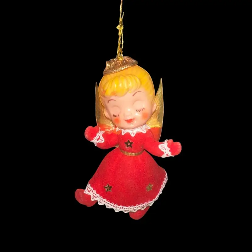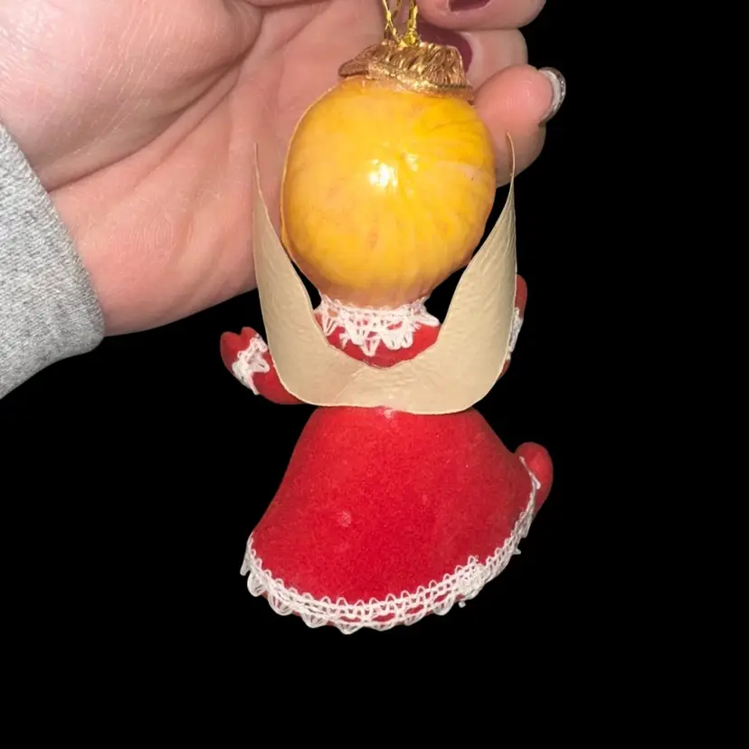 1950’s Or 60’s Flocked Angel Ornament 4”