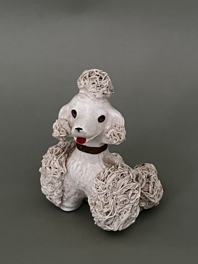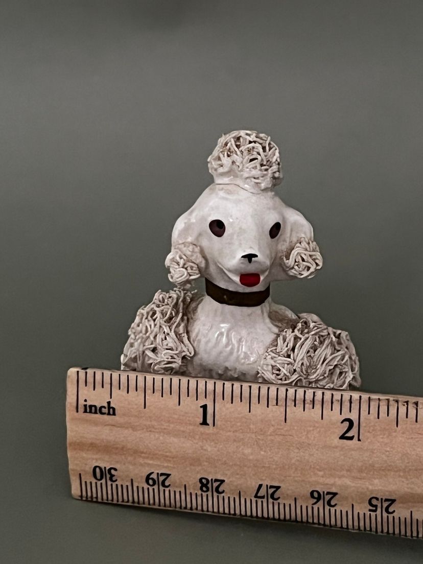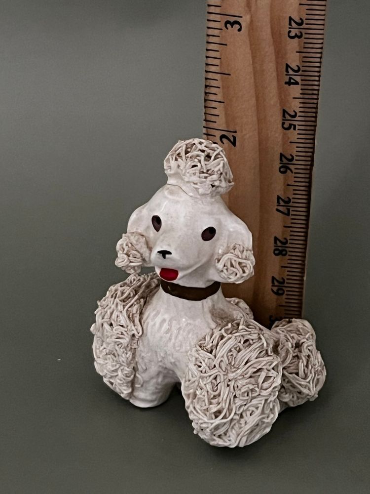 This vintage spaghetti poodle figurine is a charming collectible featuring a playful and elegant poodle. Perfect for any dog lover or collector of unique and whimsical items, these figurines capture the essence of the poodle with their delicate spaghetti design. Add a touch of vintage nostalgia to any space with this adorable poodle figurine.