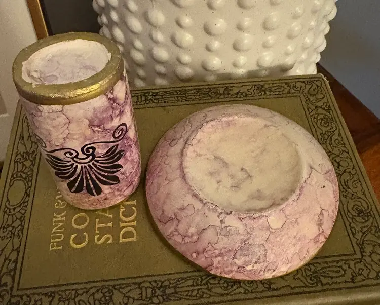 Handmade in Italy this little set is a 1950’s souvenir. Ceramic with beautiful muted pastel colors.