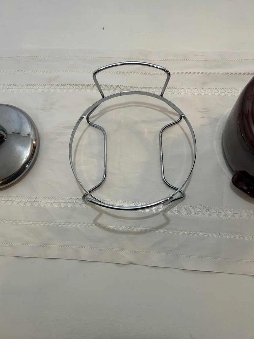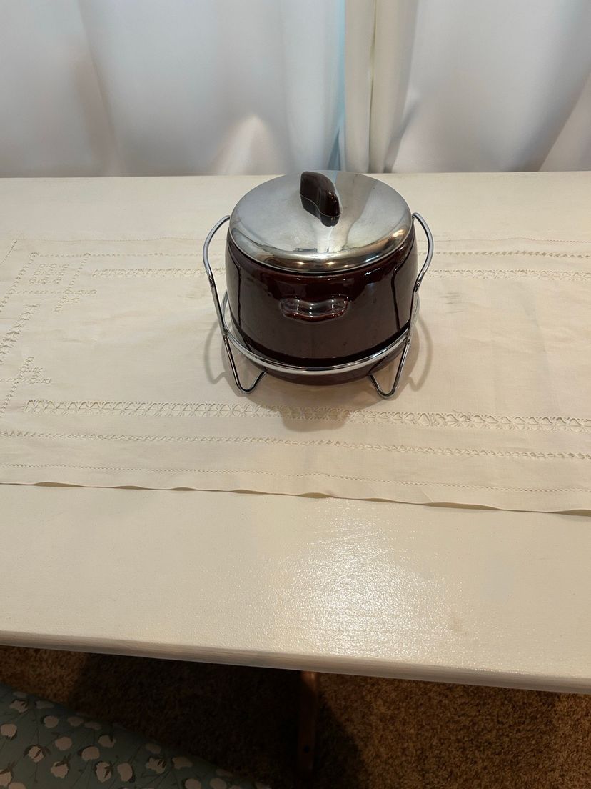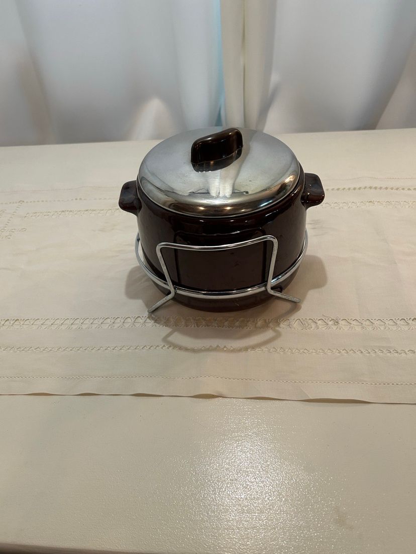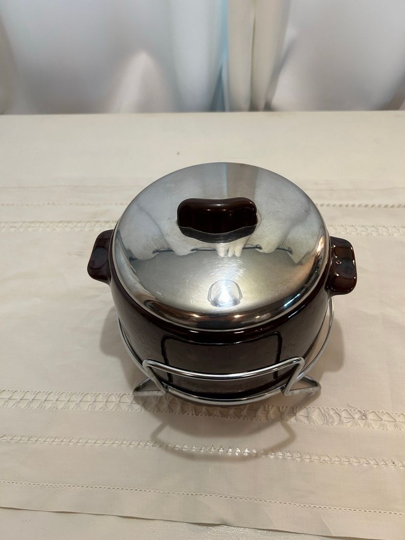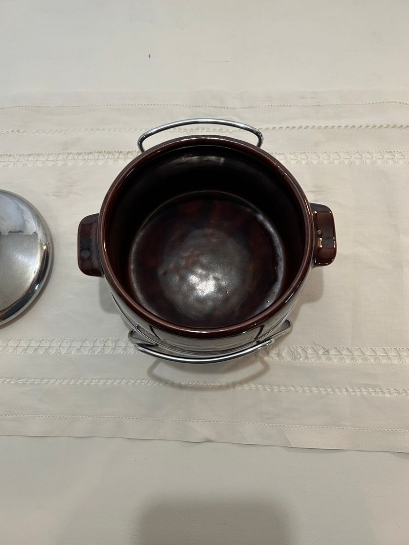 Keep your meals warm with this stylish stainless steel and brown pottery bean pot. Perfect for home kitchens, it combines functionality with a sleek design.