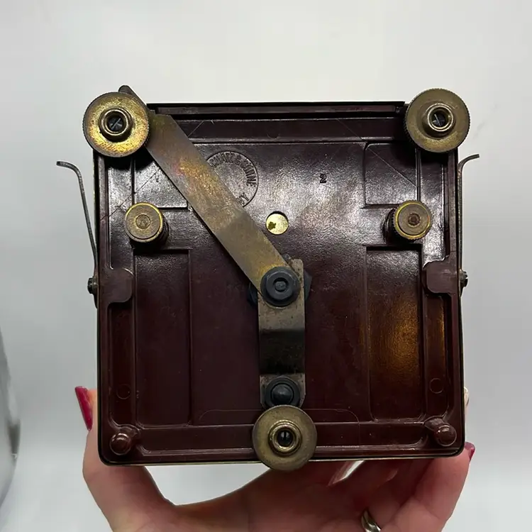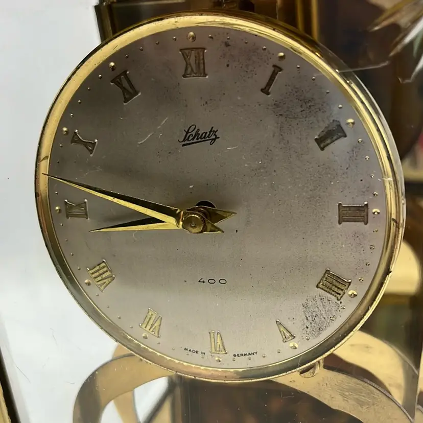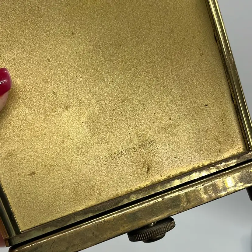 Shows some wear for the age and patina. Minor scratching on glass. Unsure if this works. Priced As Is. Approx: 8” h x 5” x 4”
