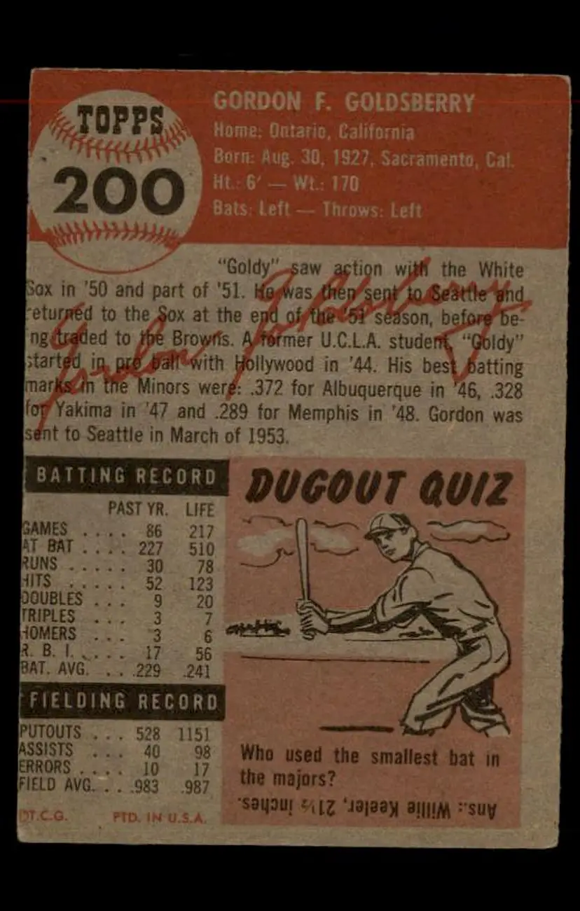 1953 Topps #200 Gordon Goldsberry - (pk-tl1) - St. Louis Browns