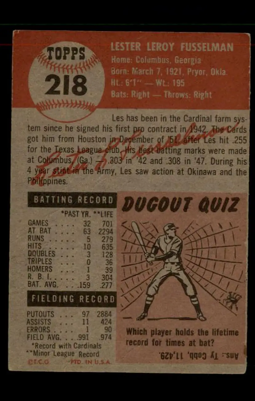 1953 Topps #218 Les Fusselman - (pk-tl1) - St. Louis Cardinals